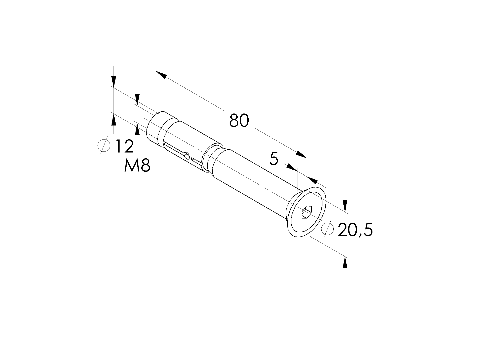 Vysokovýkonná kotva so zápustnou hlavou M8, nerezová A5/08-12-125