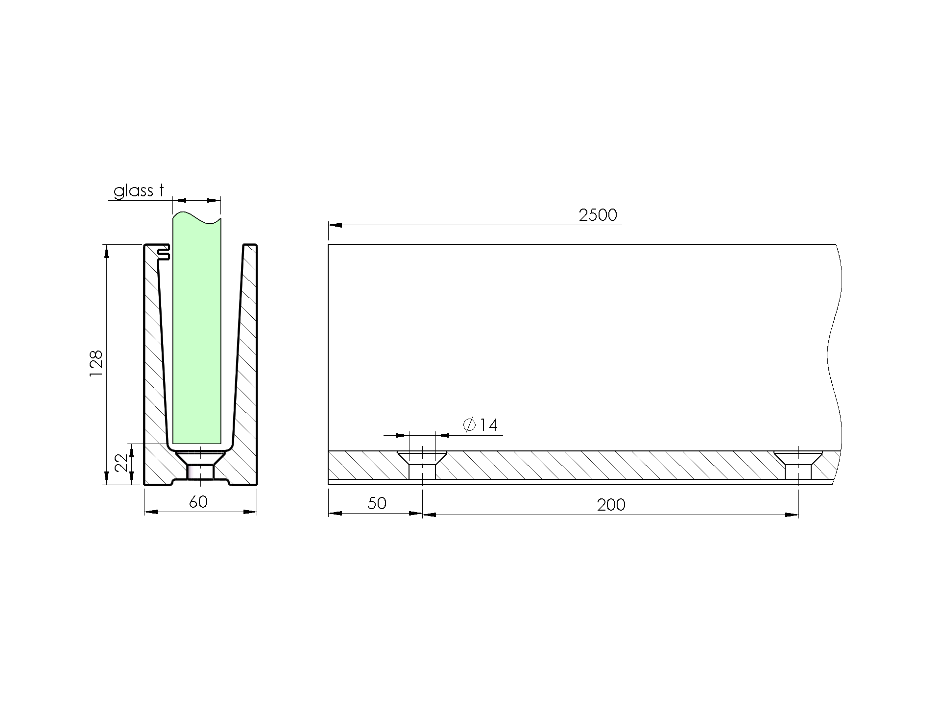 Celosklenené zábradlie-profil-bočné kotvenie AL/0009-2500-S-E