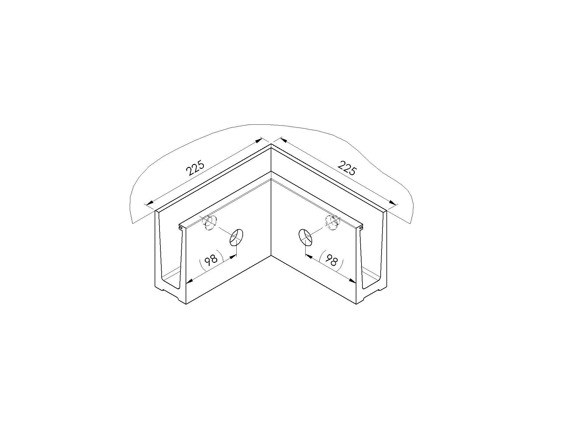 Celosklenené zábradlie-roh. profil-vrchné kotvenie AL/0008-S-E-90-IN