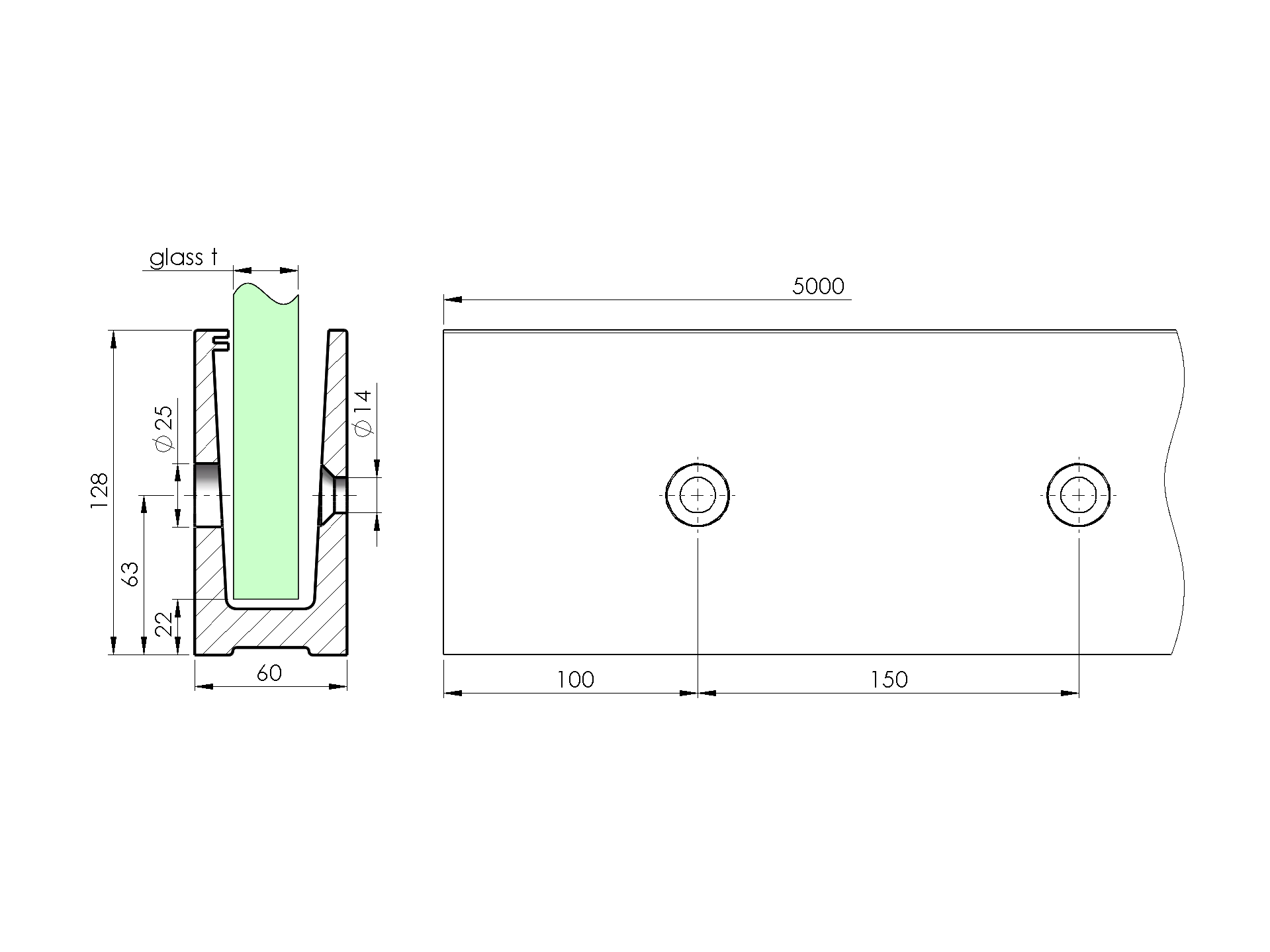 Celosklenené zábradlie-profil-bočné kotvenie AL/0009-5000-S-E