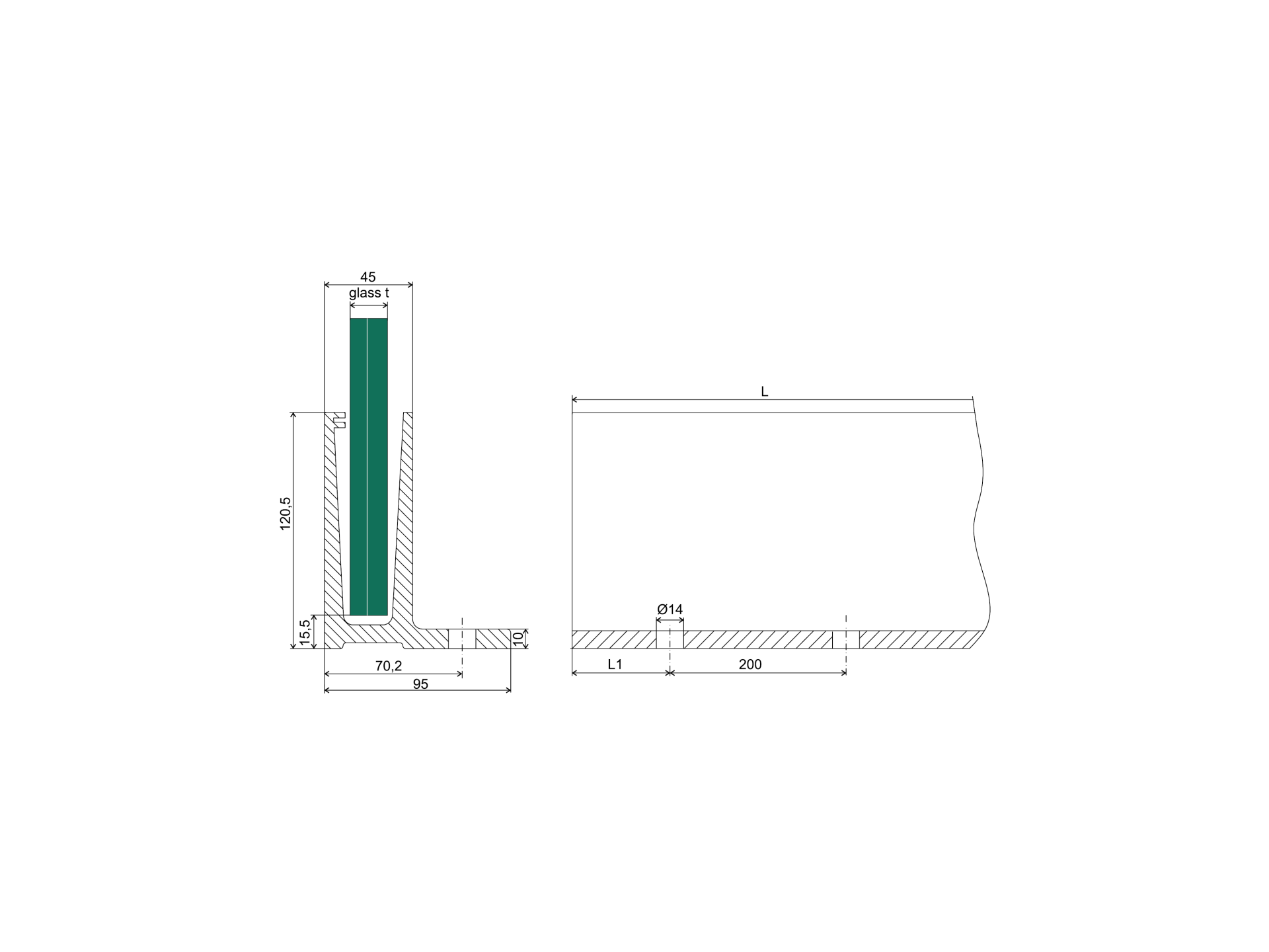 Celosklenené zábradlie-odvodňovací profil A/0006-ECO-Drain