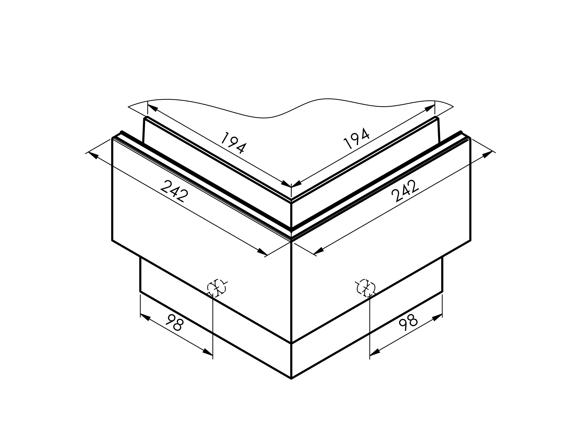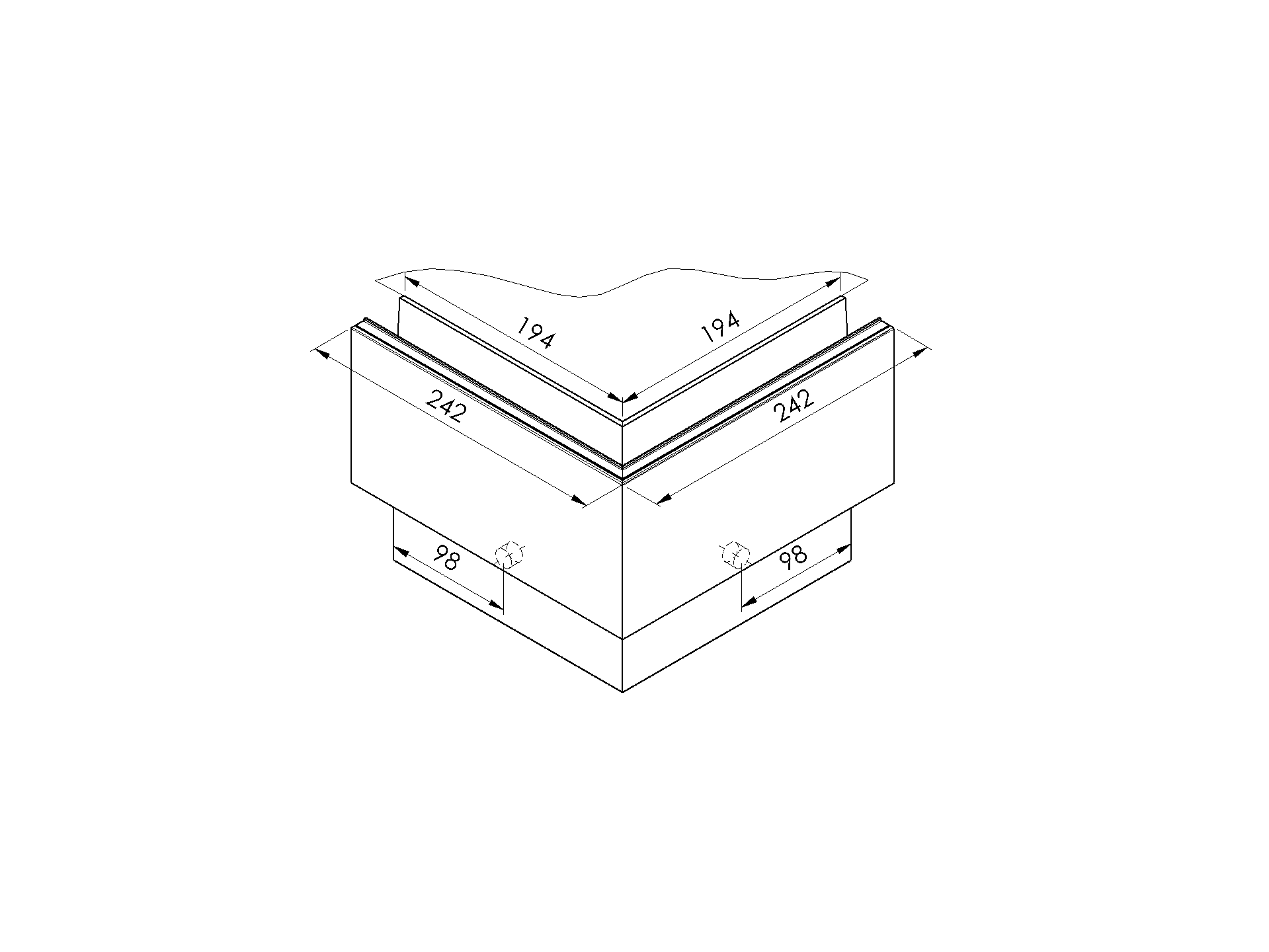 Celosklenené zábradlie-roh. profil-vrchné kotvenie AL/0004-ECO-S-E-90-OUT