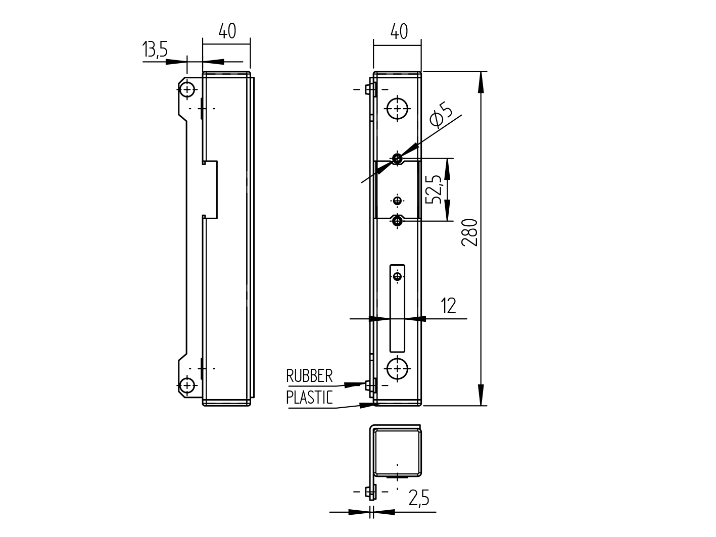 Doraz bránky pre elektromag. zámku univerzálny 40x B1/61U-40