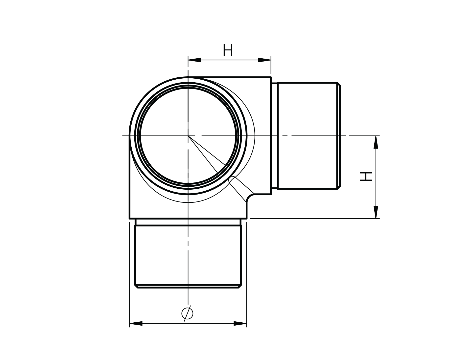 Direct flush angle AISI316, D42,4x2mm/90° A14/0304-242