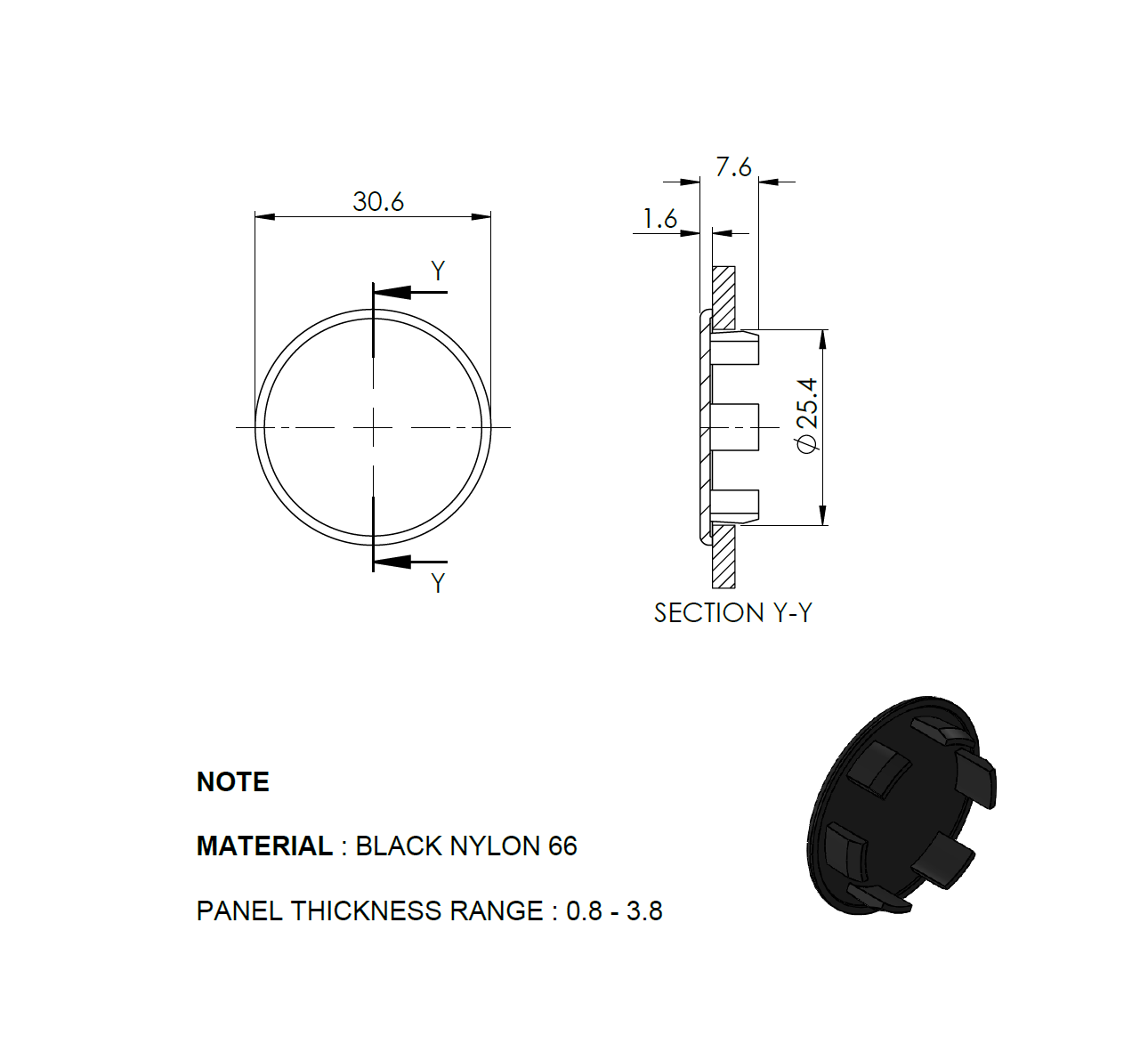PVC cover to cover the anchoring holes from the visible side for the AL profiles anchored from the side.