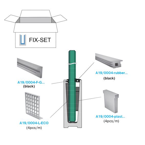 Set for anchoring glass 16.76mm, into profiles AL/0004..., AL/0004-ECO..., AL/0005, AL/0006, AL/0006-ECO..., AL/0011..., gray seals.