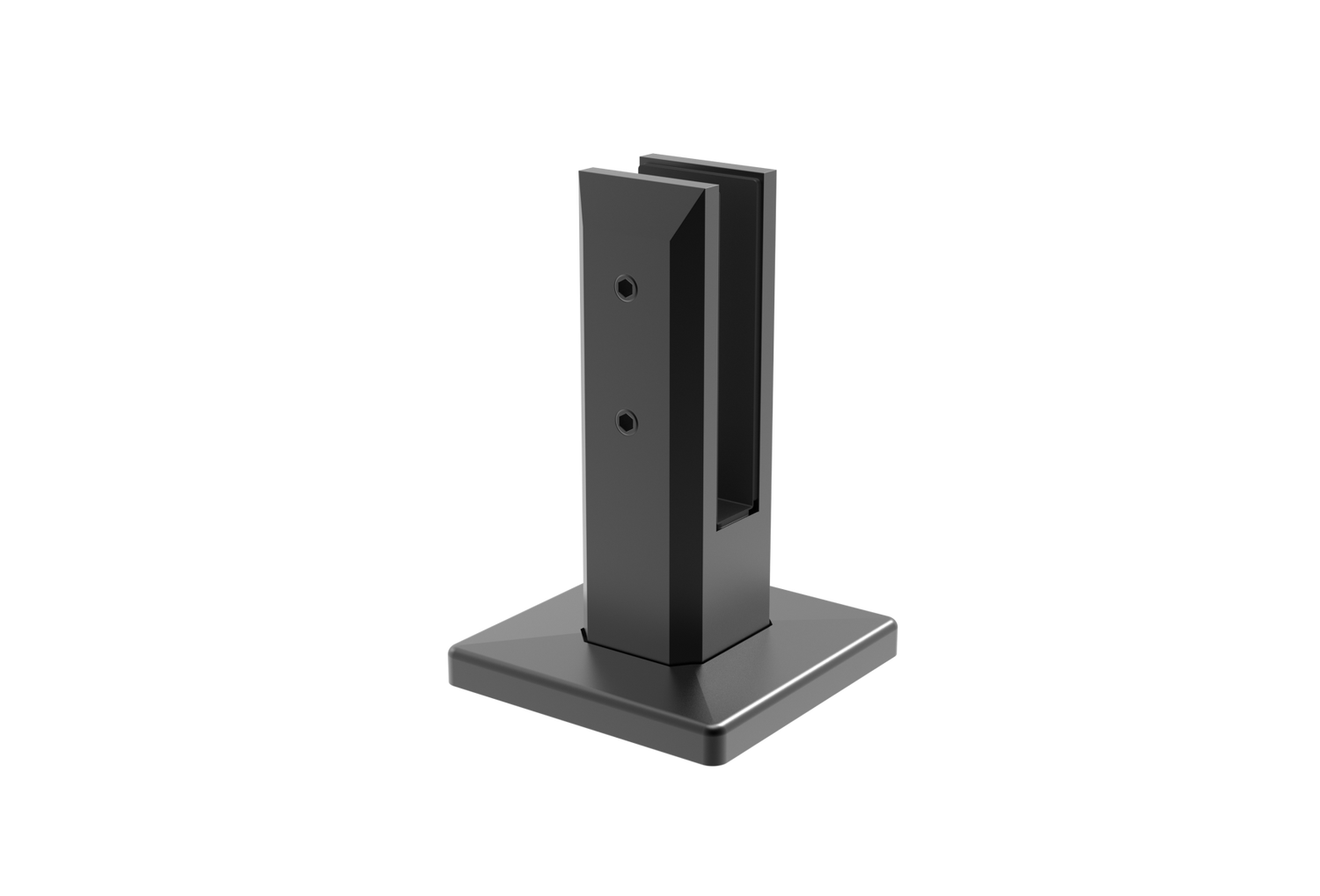 A spigot is a special type of holder used to fasten glass without the need for a hole in the glass. This element is designed to provide an aesthetic and safe fixing of the glass without the need for frames or other supporting structures. The design is usually minimalistic and least noticeable, it is recommended to use glass handles for spigots. The fixing of the glass is achieved with the help of crimped joints. Anchoring is achieved through holes on the flange. This holder is recommended for banisters (low banisters) on the attic. The maximum recommended height of the railing is 500mm. Necessity to use a glass handle.