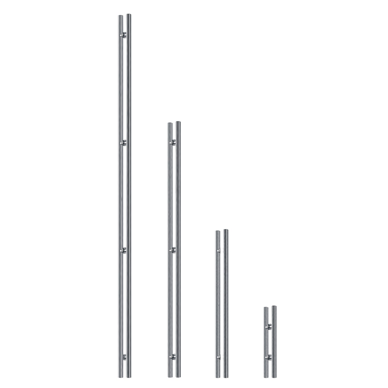 Material: Stainless steel AISI 304, Surface finish: Satined, Glass t: 8-12, H: 400, h: 300, D: 25, Glass hole: Yes