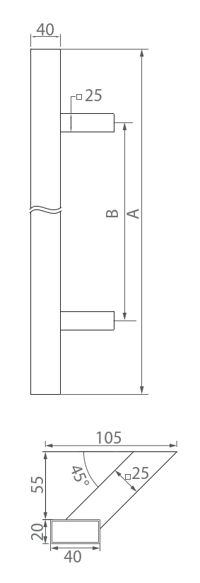 Pochwyt - antaba AISI304, BLACK GS-BLACK/M6-20x40-1200-45