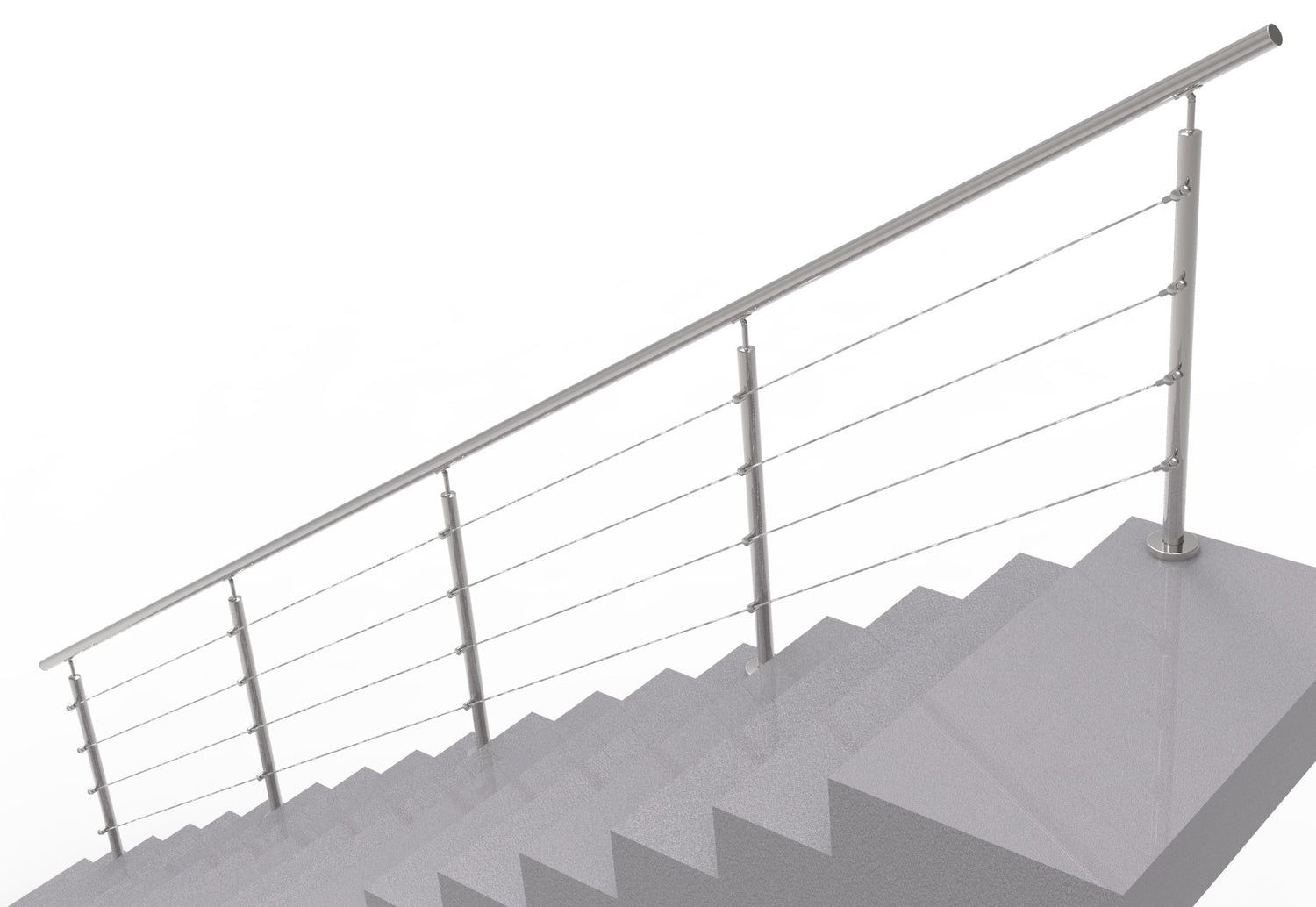 Materiał: Stal nierdzewna AISI 304, Wykończenie powierzchni: Szlifowany, Typ/Długość: Schody/900mm, Wypełnienie: Linka, Słupek: D42,4x2, Poręcz: D42,4x2