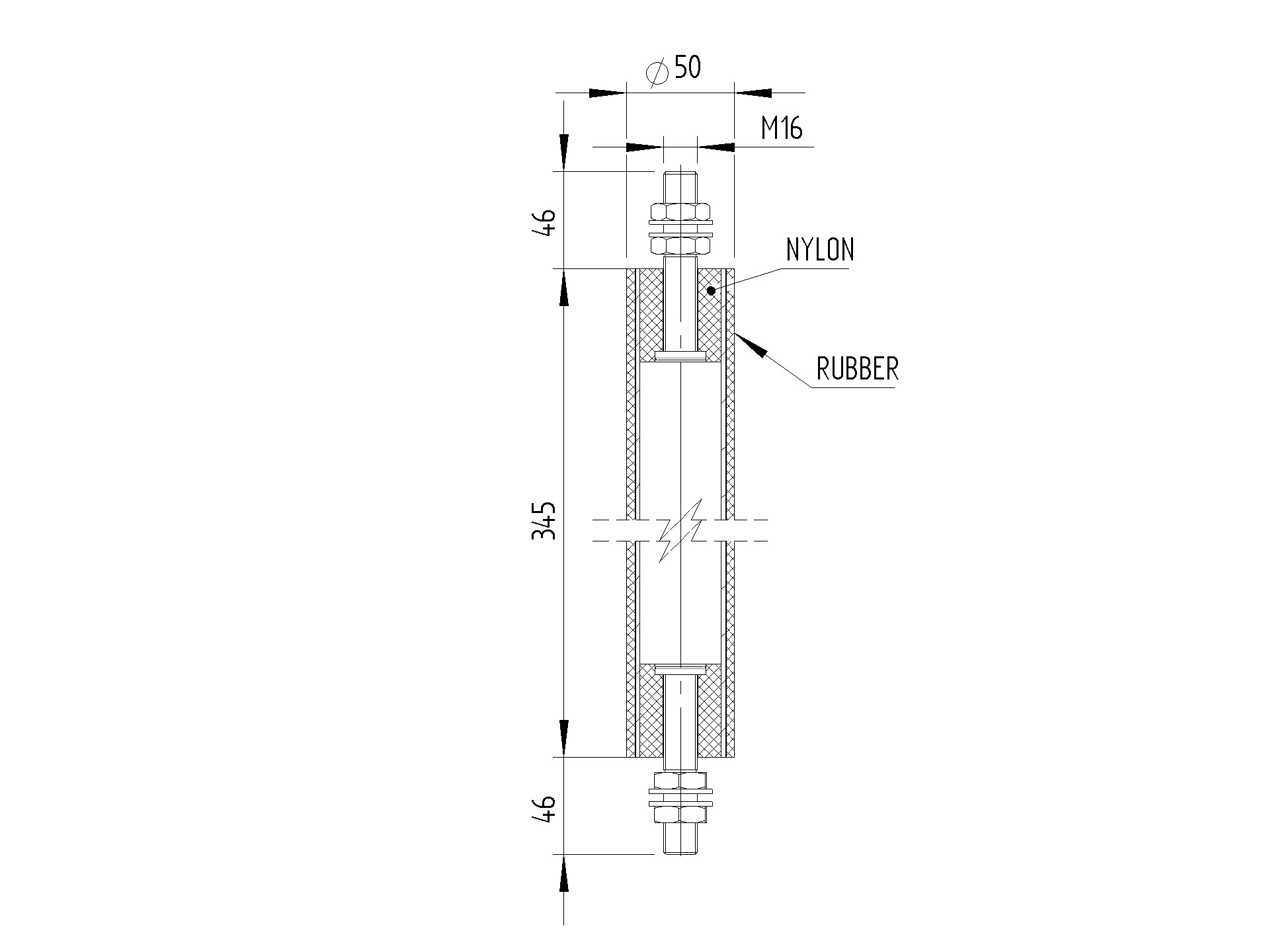 Wiedzienie gorne - Walec D50, H340mm, black rubber H/29-V
