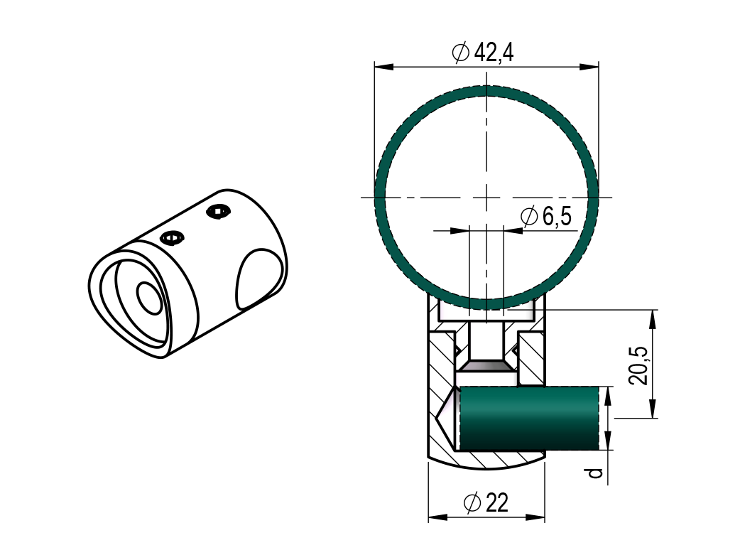 Uchwyt wypełnienia końcowy prawy- poler AISI304, d A/0833-000-L