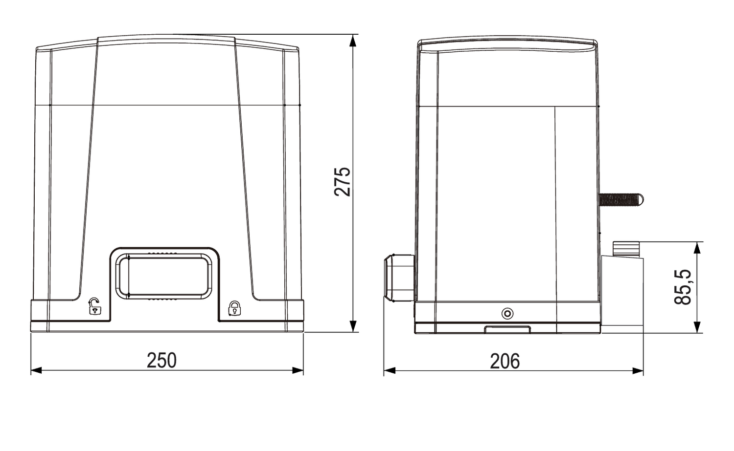 Zestaw napędowy ROLLKIT do bram przesuwnych max. 400kg (zalecana waga bramy samonośnej 200kg, na kółkach 300kg). W opakowaniu silnik z elektroniką CUD-3S, rozszerzonymi funkcjami i SMARTBOX1-WIFI do połączenia elektroniki napędu z domową siecią Wi-Fi.