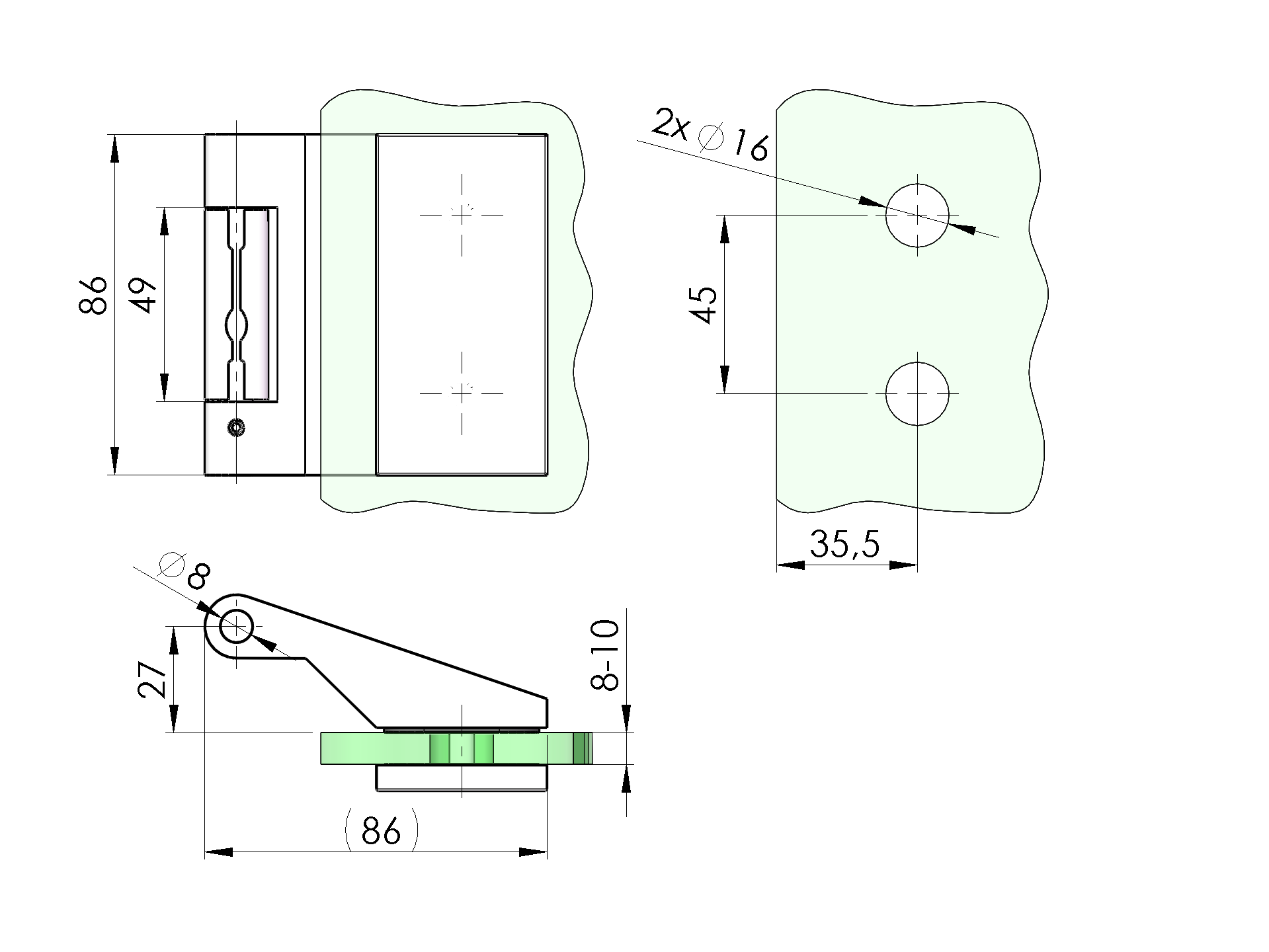 • Zawias do ościeżnicy szklanych drzwi office Al GS-AL/D-811/S-VA