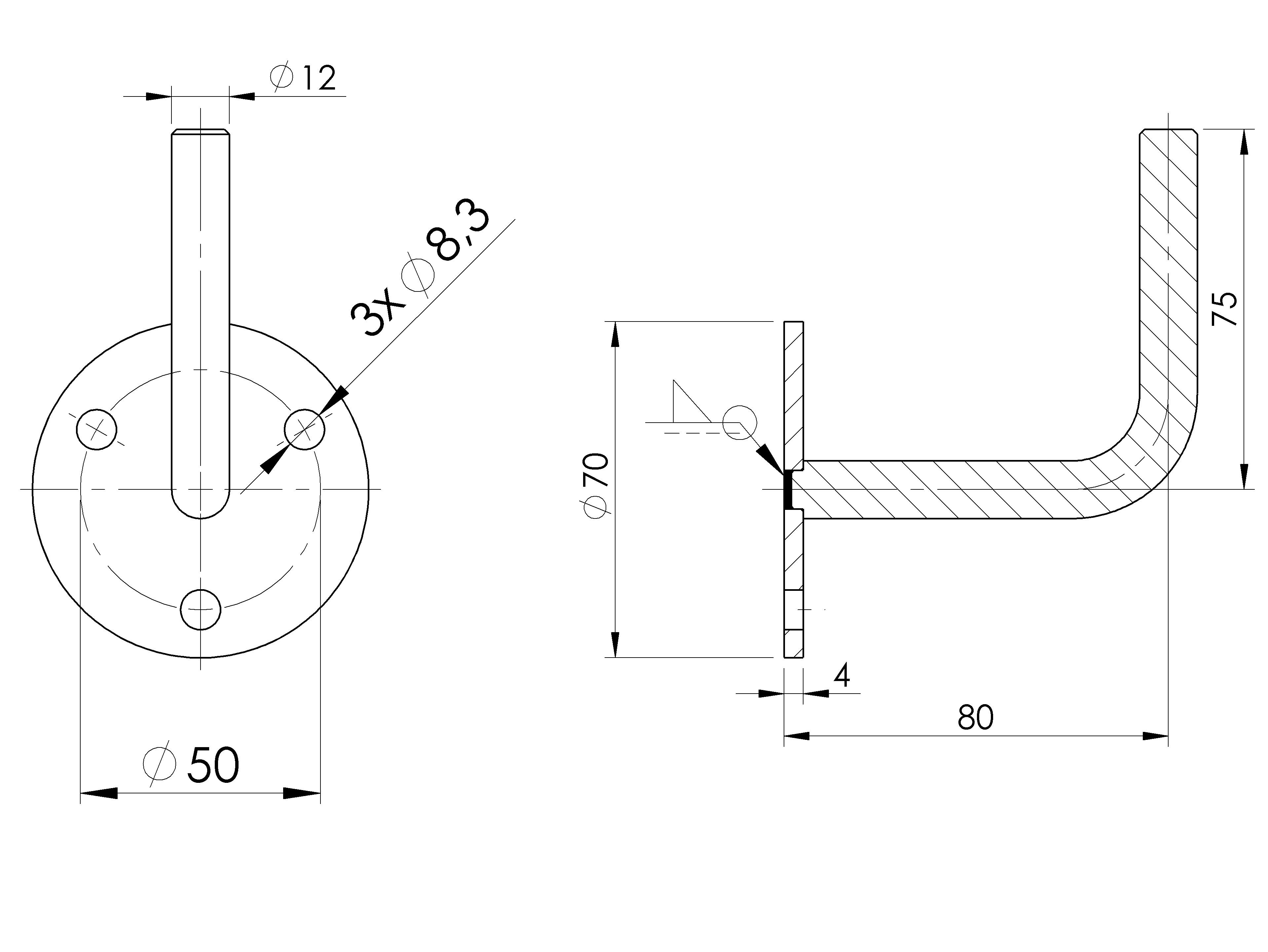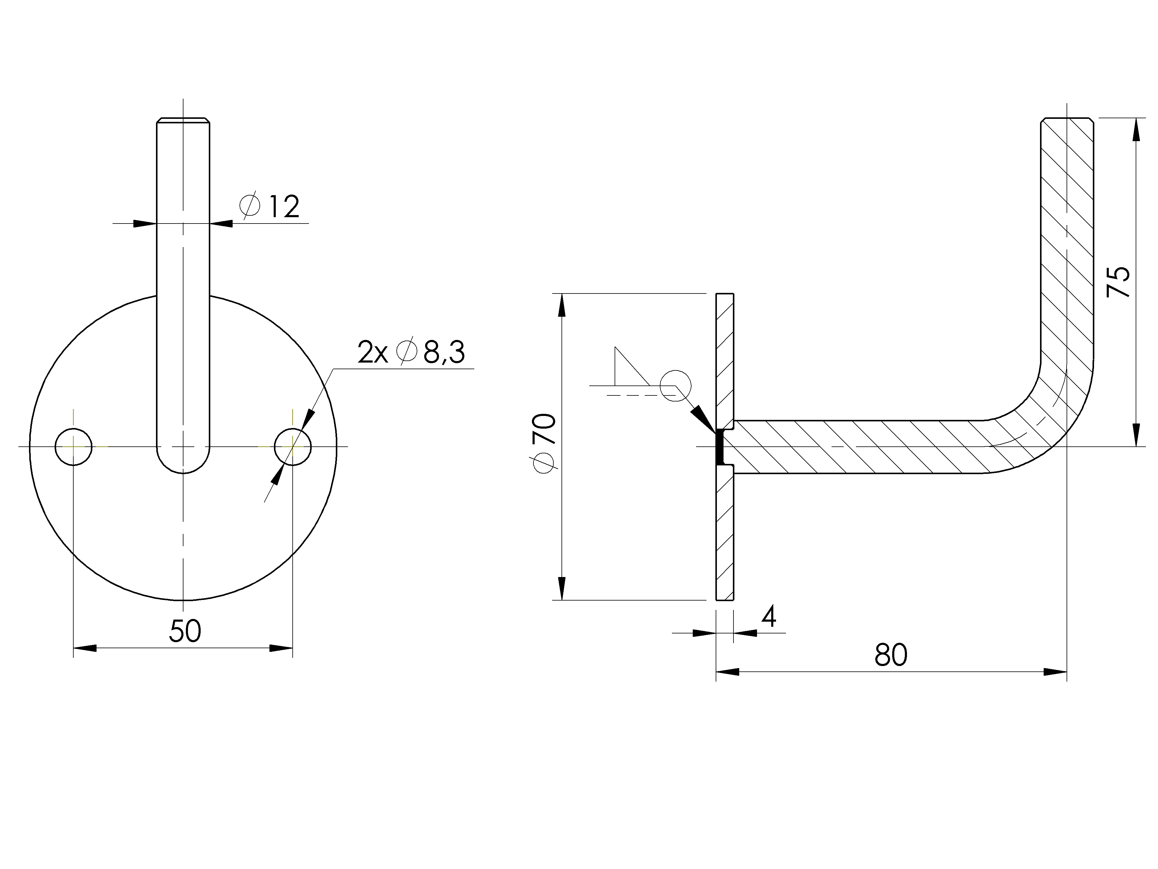 Wsporniki poręczy są ważnym elementem balustrady, który ma wpływ na ogólny wygląd, funkcjonalność i bezpieczeństwo. Służą do mocowania poręczy do ściany, gdzie zapewniają pewne podparcie i stabilizację. Ten uchwyt jest dostarczany bez półki na uchwyty. Zakotwienie wspornika do ściany odbywa się za pomocą dwóch otworów w kołnierzu.