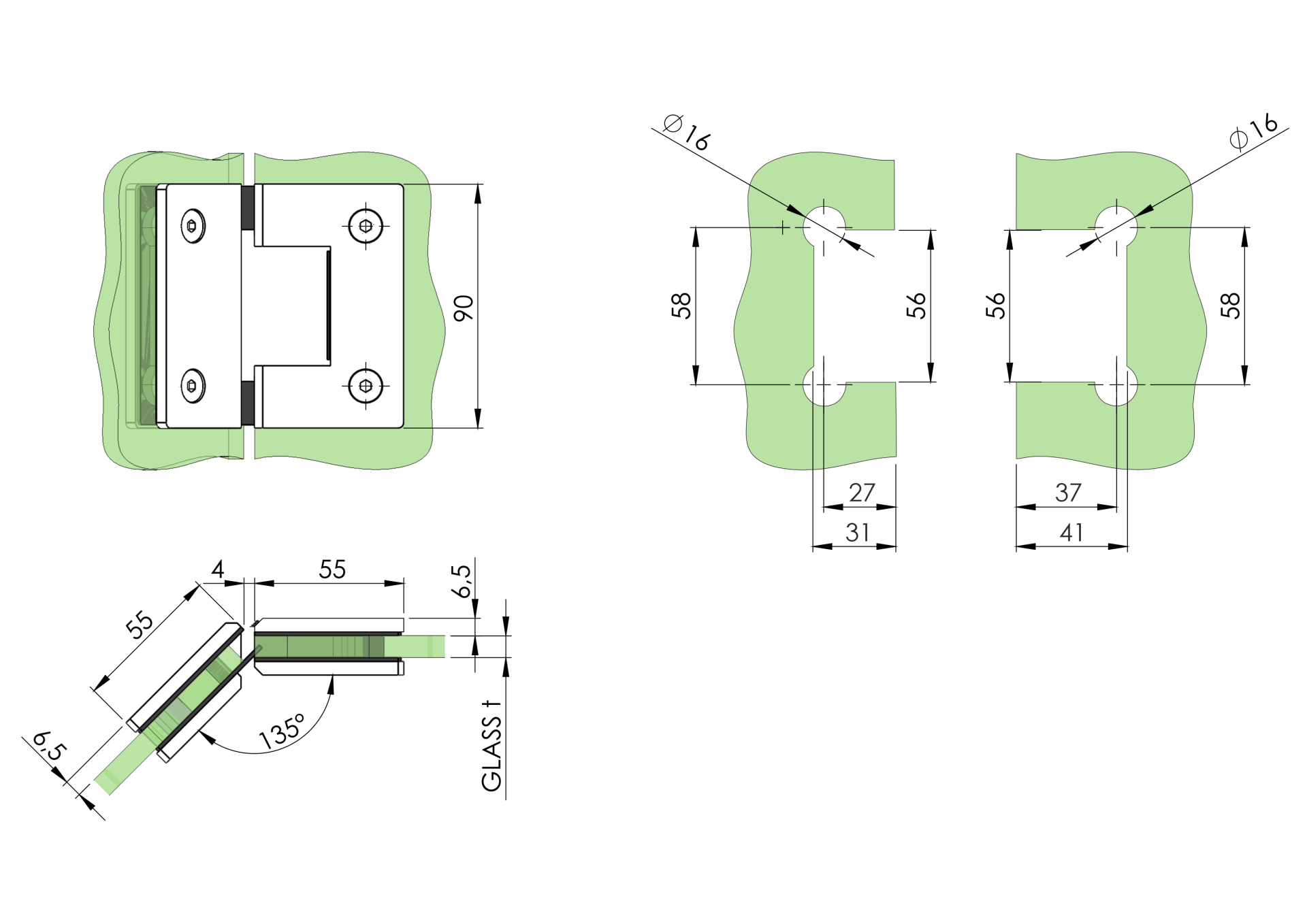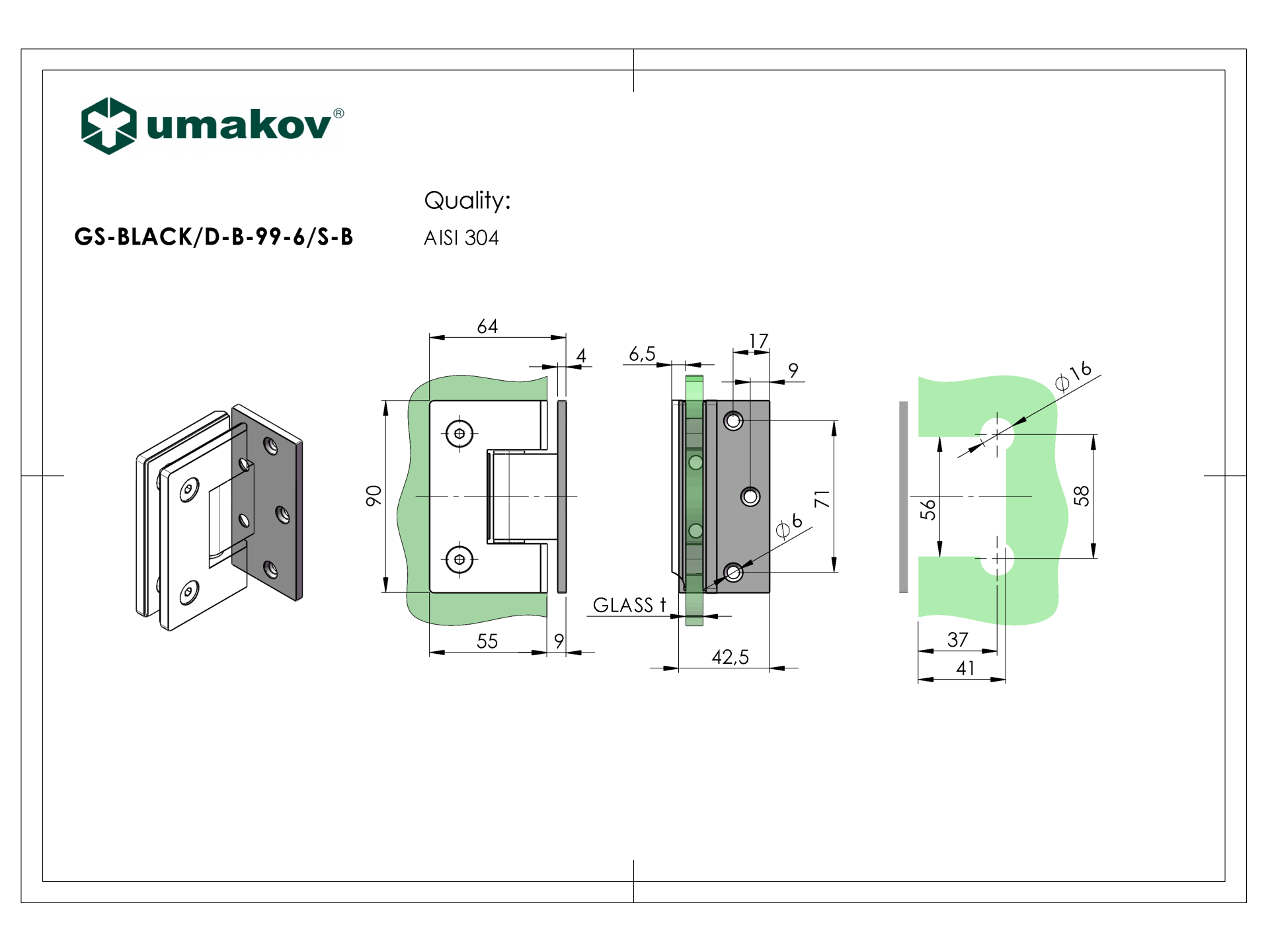 Zawias do drzwi szklanych +/- 90 stopni BLACK GS-BLACK/D-B-990-6/S-B