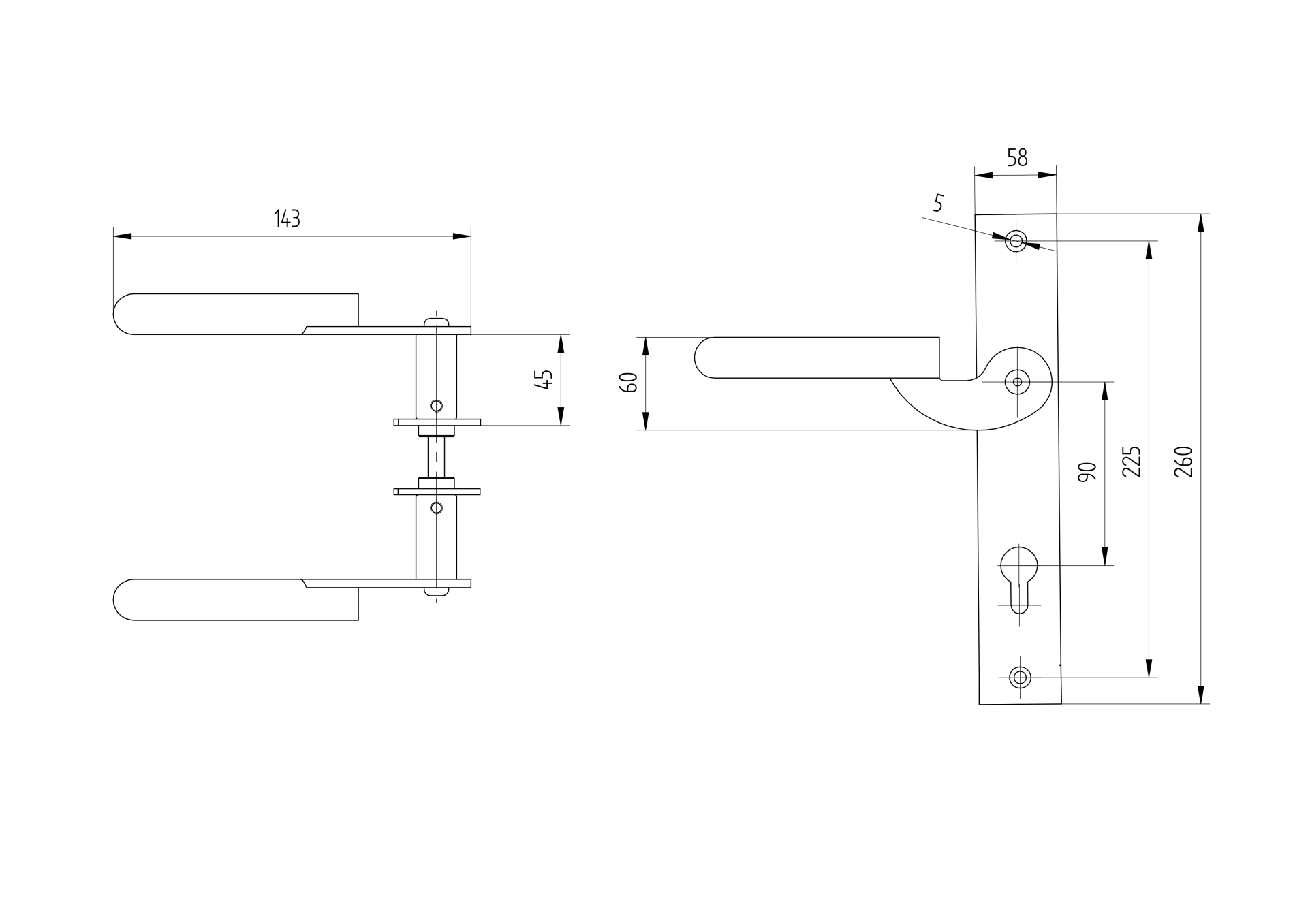1 szt.MateriałStalWykończenie powierzchniSurowyDługość osiowa90mmKlamka z szyldem h260, b60, t3mm D12/07R-90