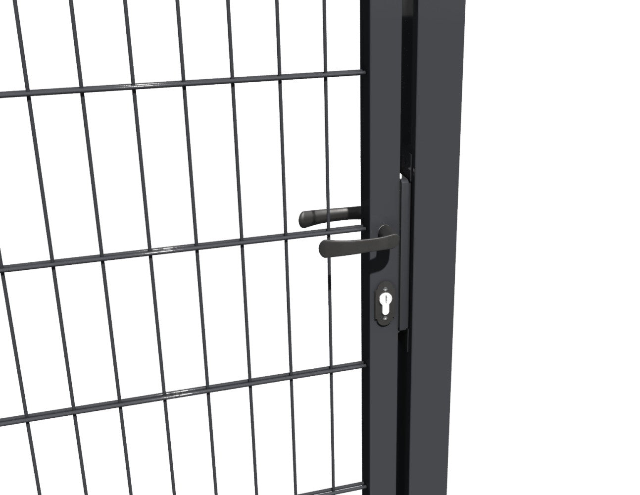 Wypełnienie bramki stanowi spawany panel 2D 5/4/5 z rozmiarem oczek 200x50mm. Wysokość bramki 1700mm. Szerokość bramki 1000mm (samodzielne skrzydło bramki 900mm). Profil ramy 40x40x1,5mm.