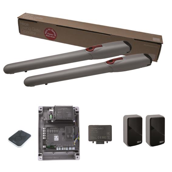 Nice napęd do bramy dwuskrzydłowej, wyposażony w fotokomórki