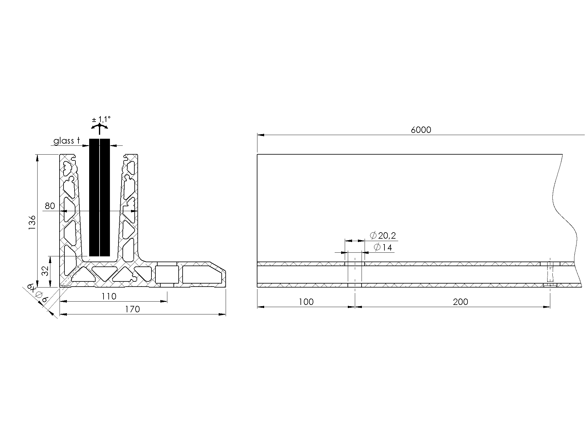 Zestaw do regulowanego mocowania szkła - canal B A19/FLEX1-P2-V1