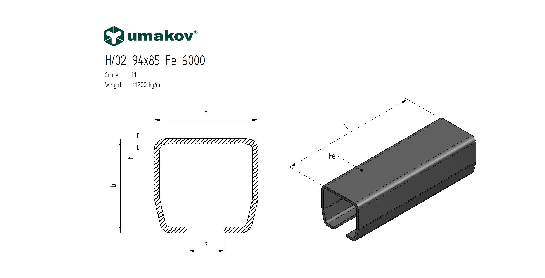 Materiał: Stal, Wykończenie powierzchni: Surowy, Marka: Umakov, Wymiary profilu (mm): 94x85, L: 6000, a: 94, b: 85, s: 33, t: 5