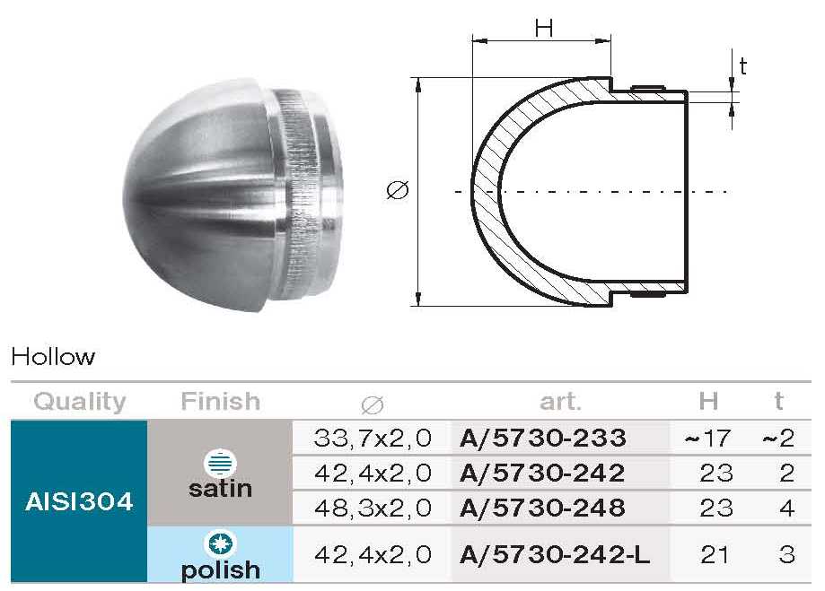 Zaślepka nierdzewna rury A14/5730-242