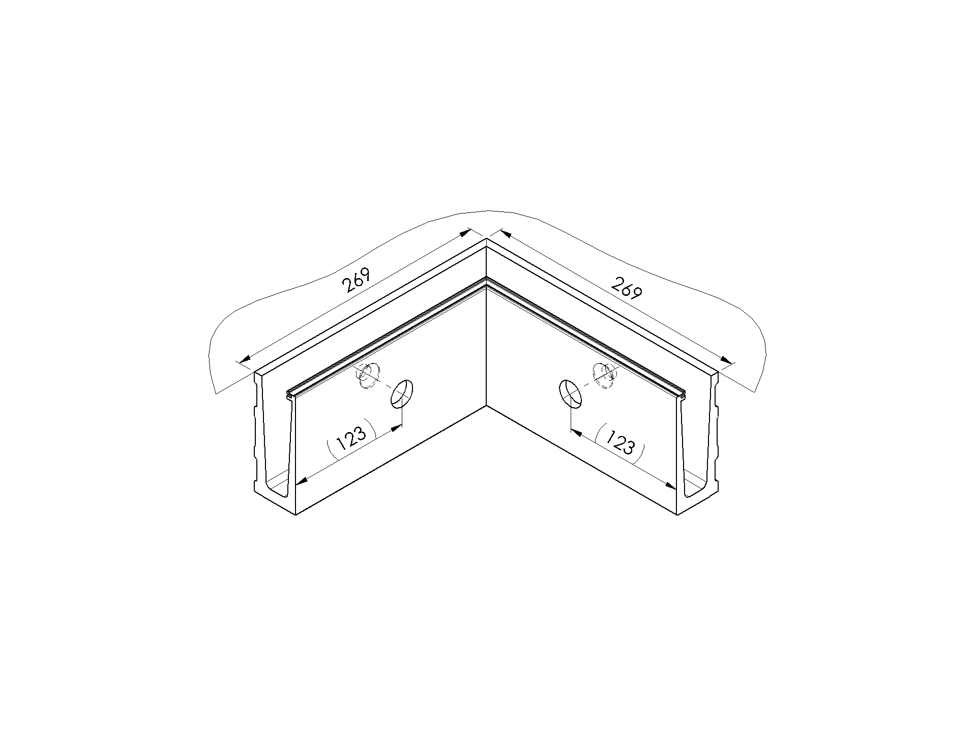 AL kotviaci profil pre sklo, bočné kotvenie, povrch brúsený a eloxovaný, bez príslušenstva.