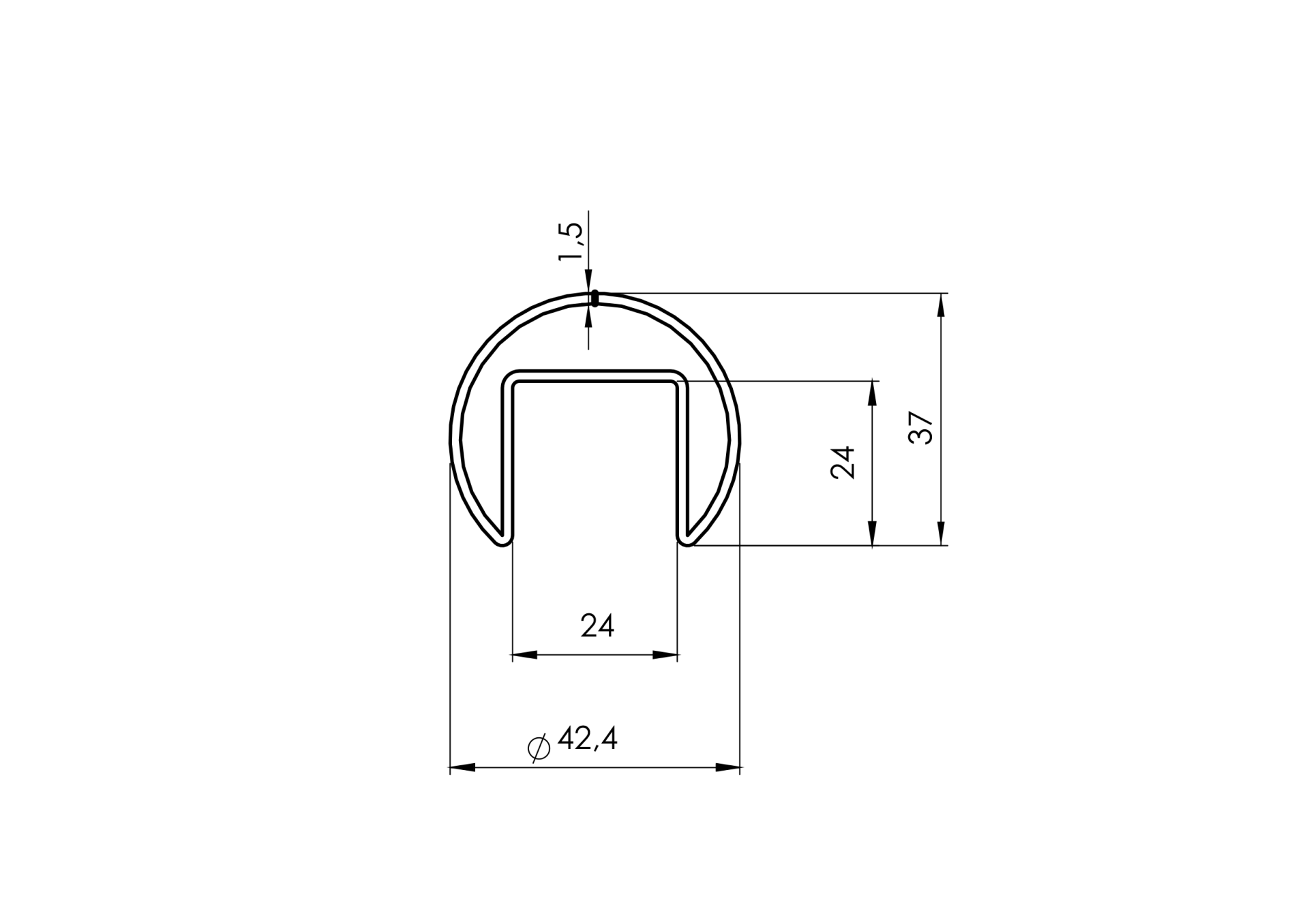 Celosklenené zábradlie-profil-bočný-vnút.odvodneny AL/0005-D-5000-S-E-Drain