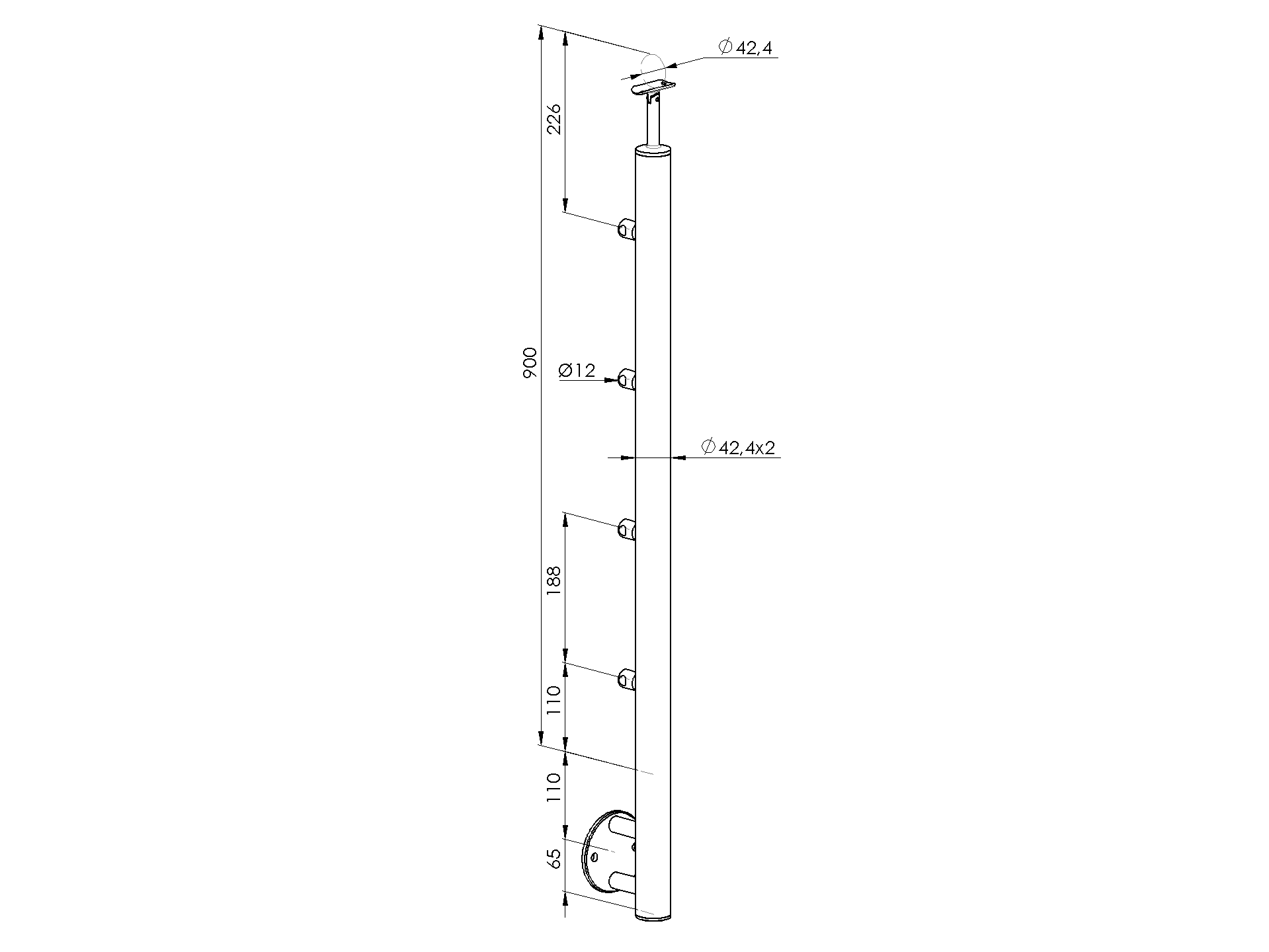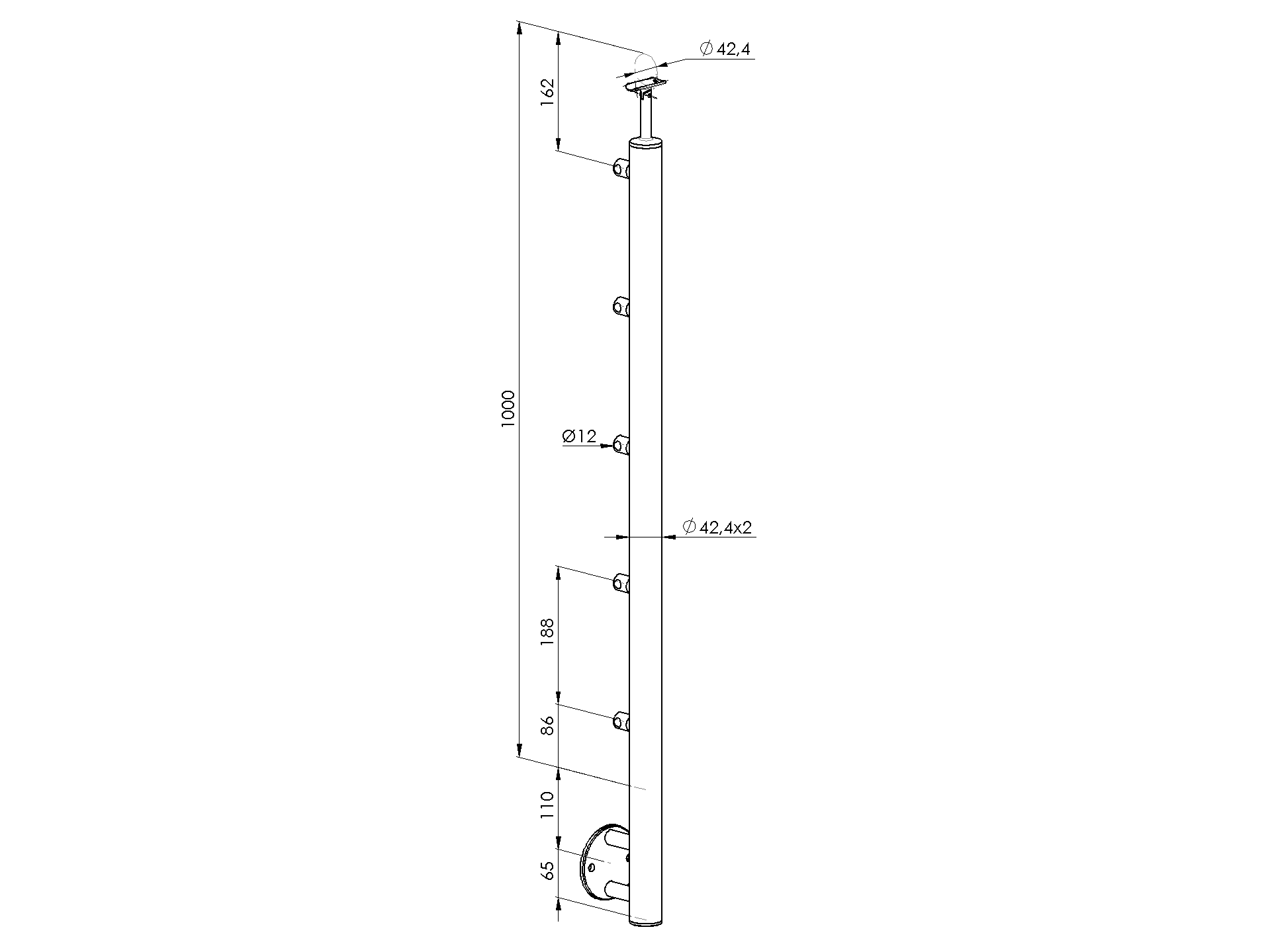 nerezový stĺpik, VK-rovné AISI316, D42,4/5xd12/H10 A14-VR100-5D12