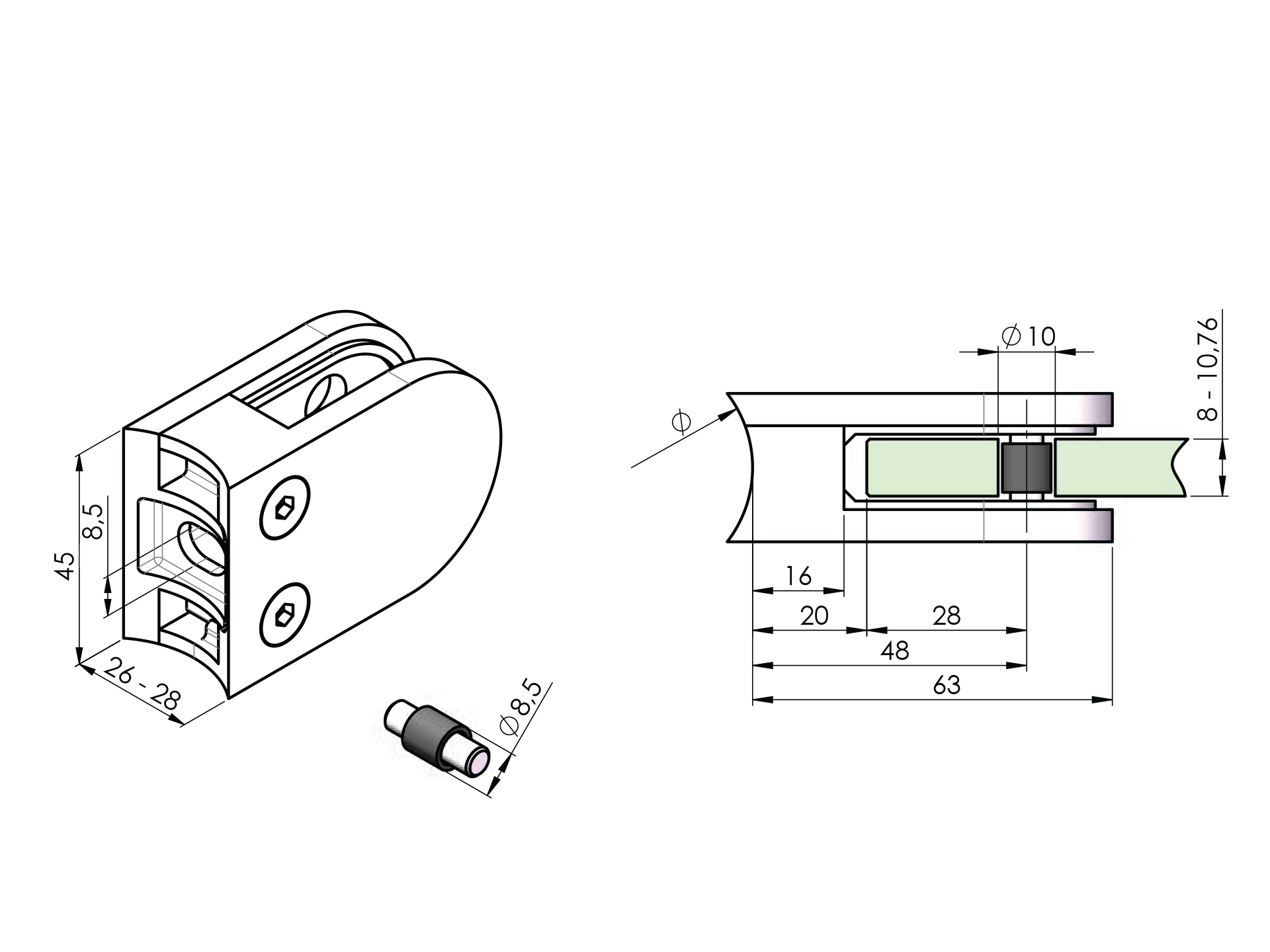 Stĺpik, vrchné kotvenie - pravý A-VR100-2GR