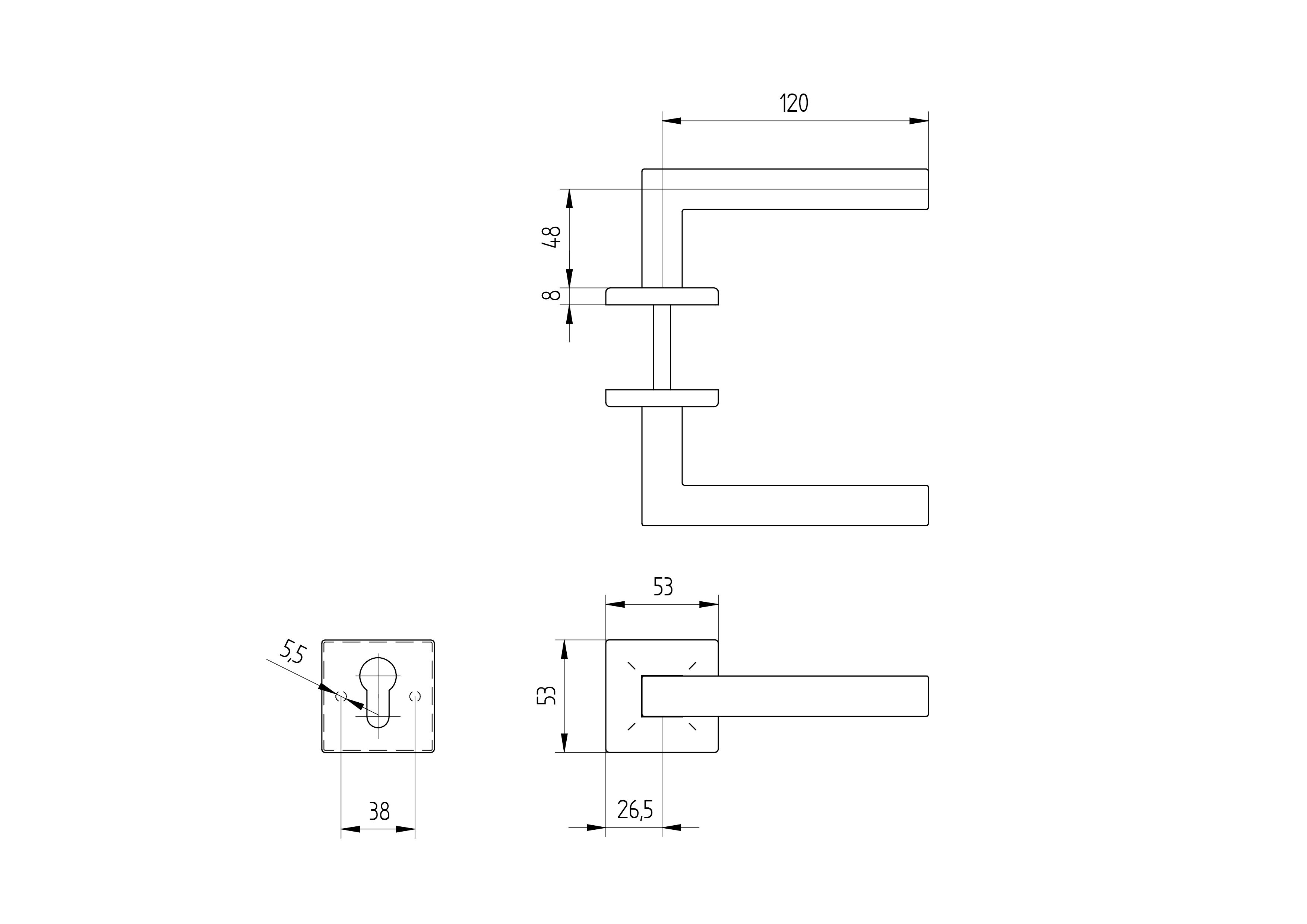 Kľučka so štítkom - pár, AISI 304, K320 D8/06-i