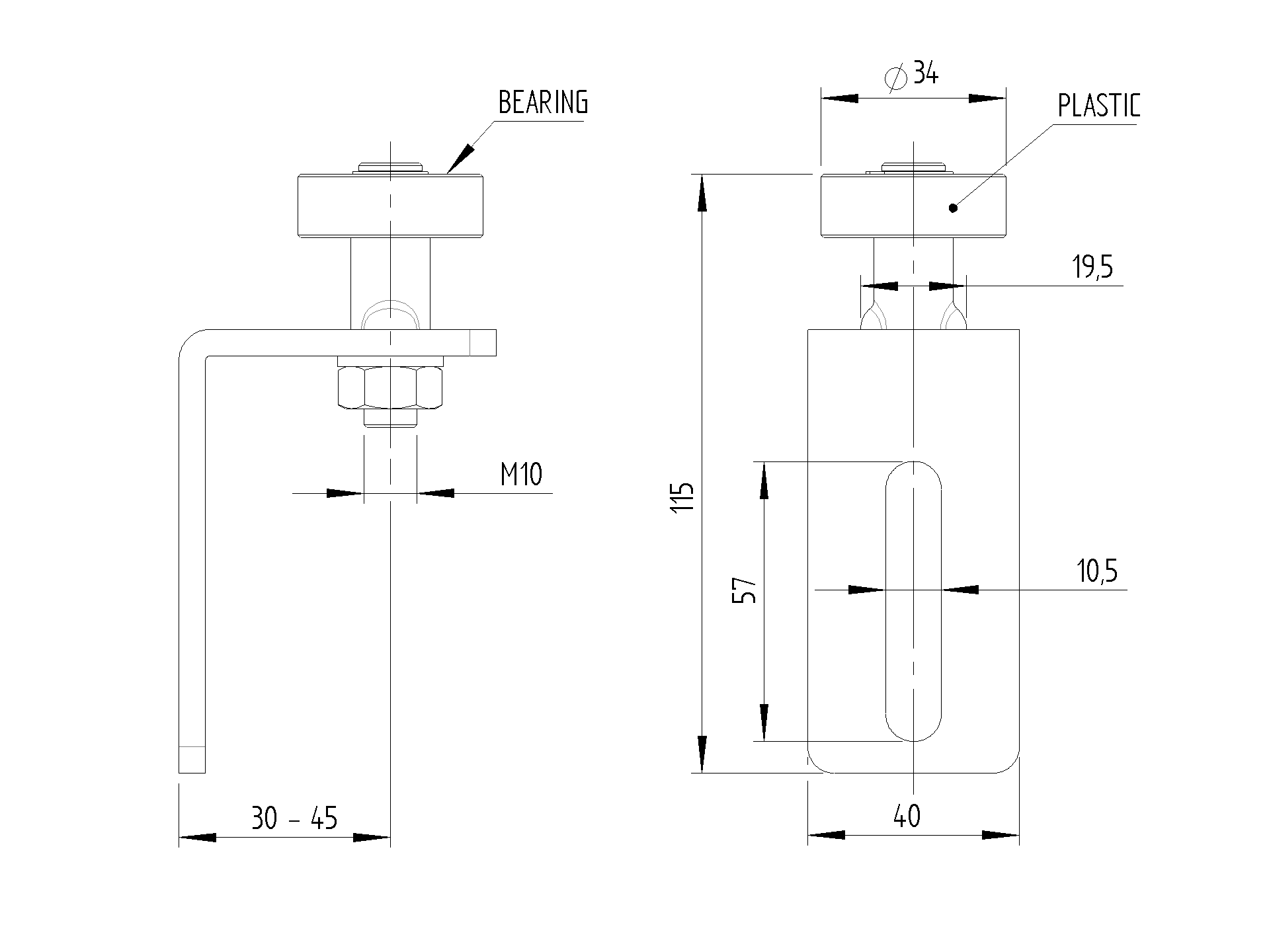 Koliesko nylonové s konzolou a ložiskom, AISI304 H8/53