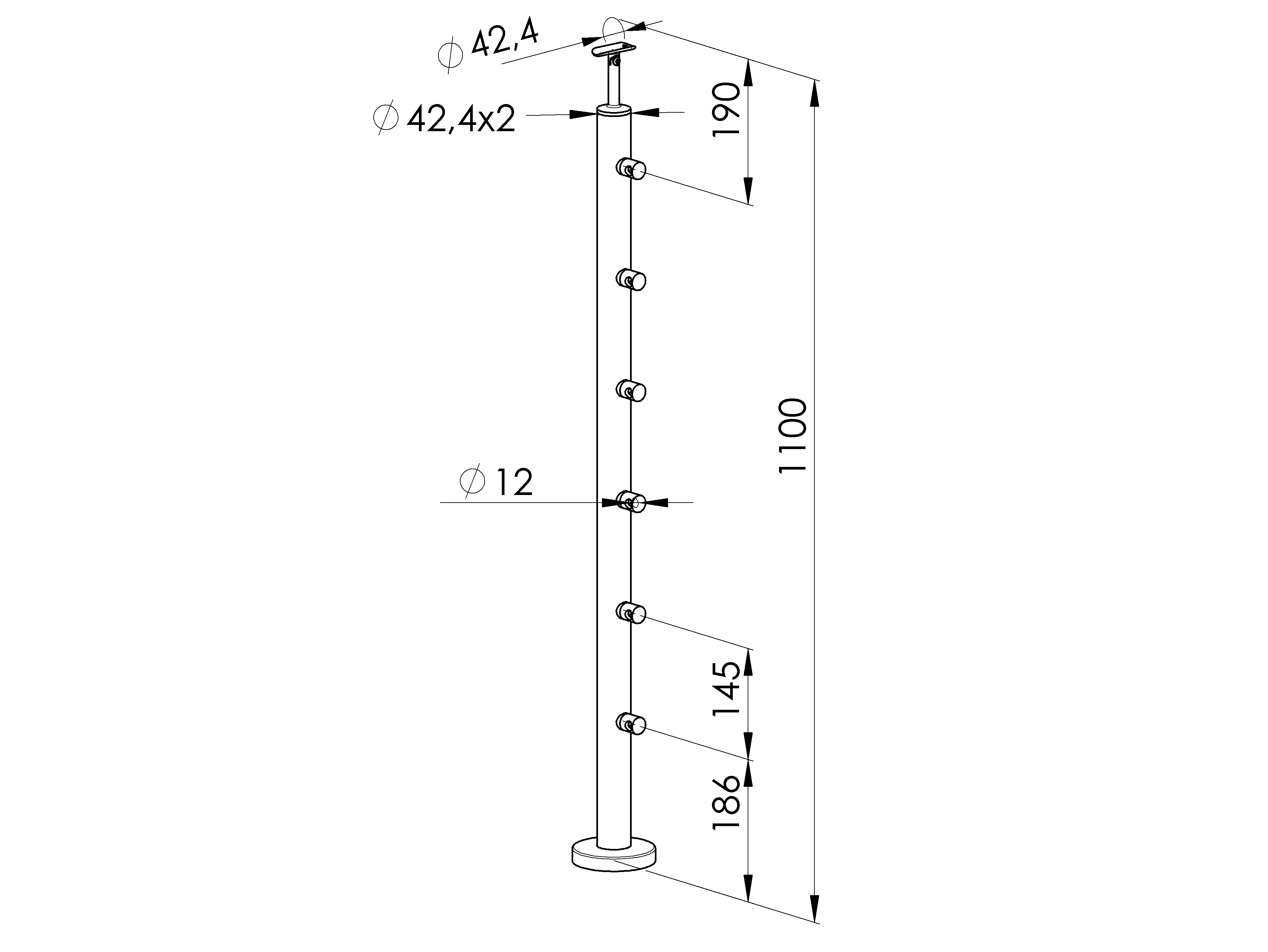 nerezový stĺpik, VK-rovné AISI304, D42,4/5xd12/H11 A-VR110-5D12