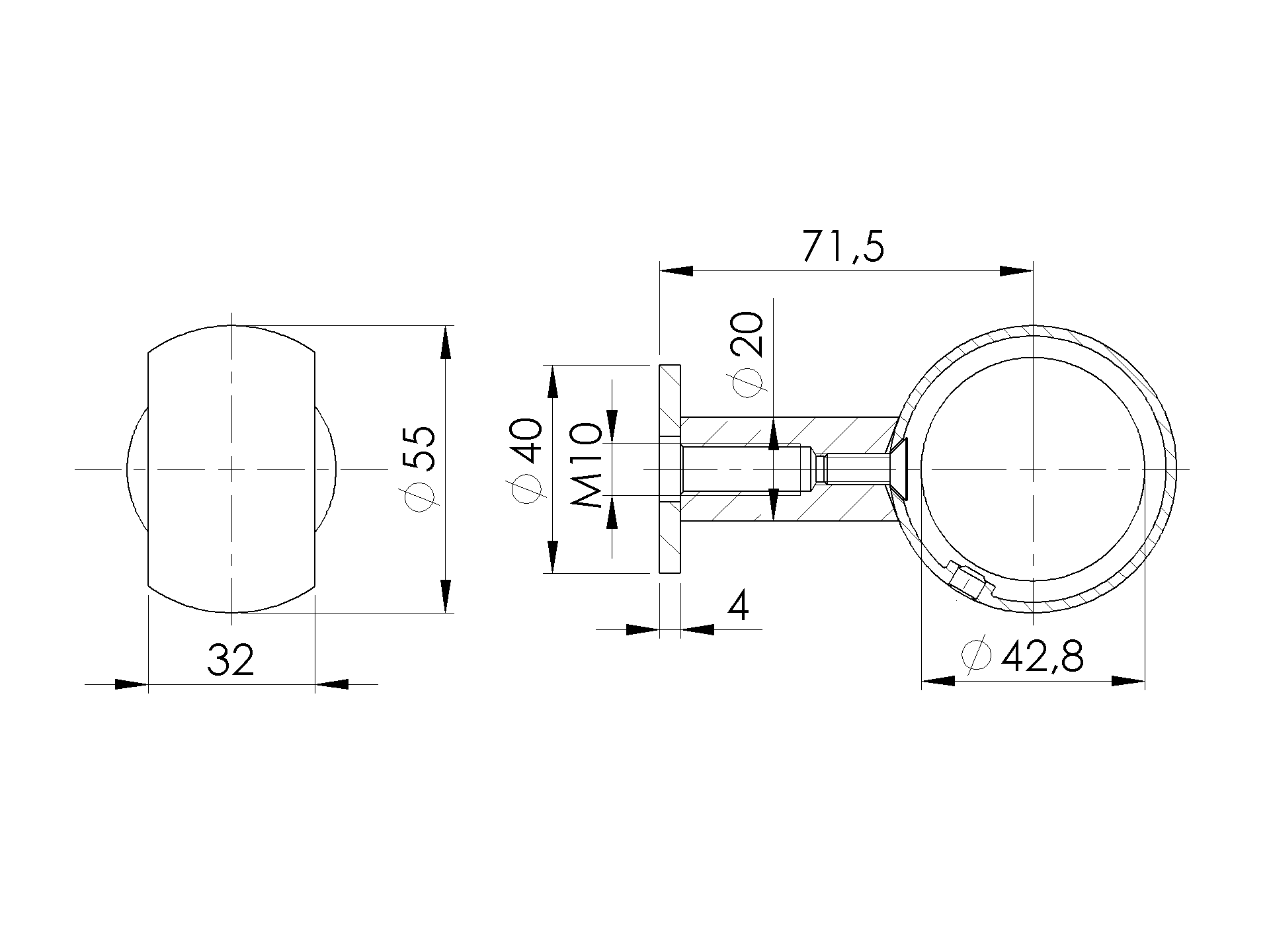 Nerezový stĺpik, bočné kotvenie - rovné A-BR100-5D12