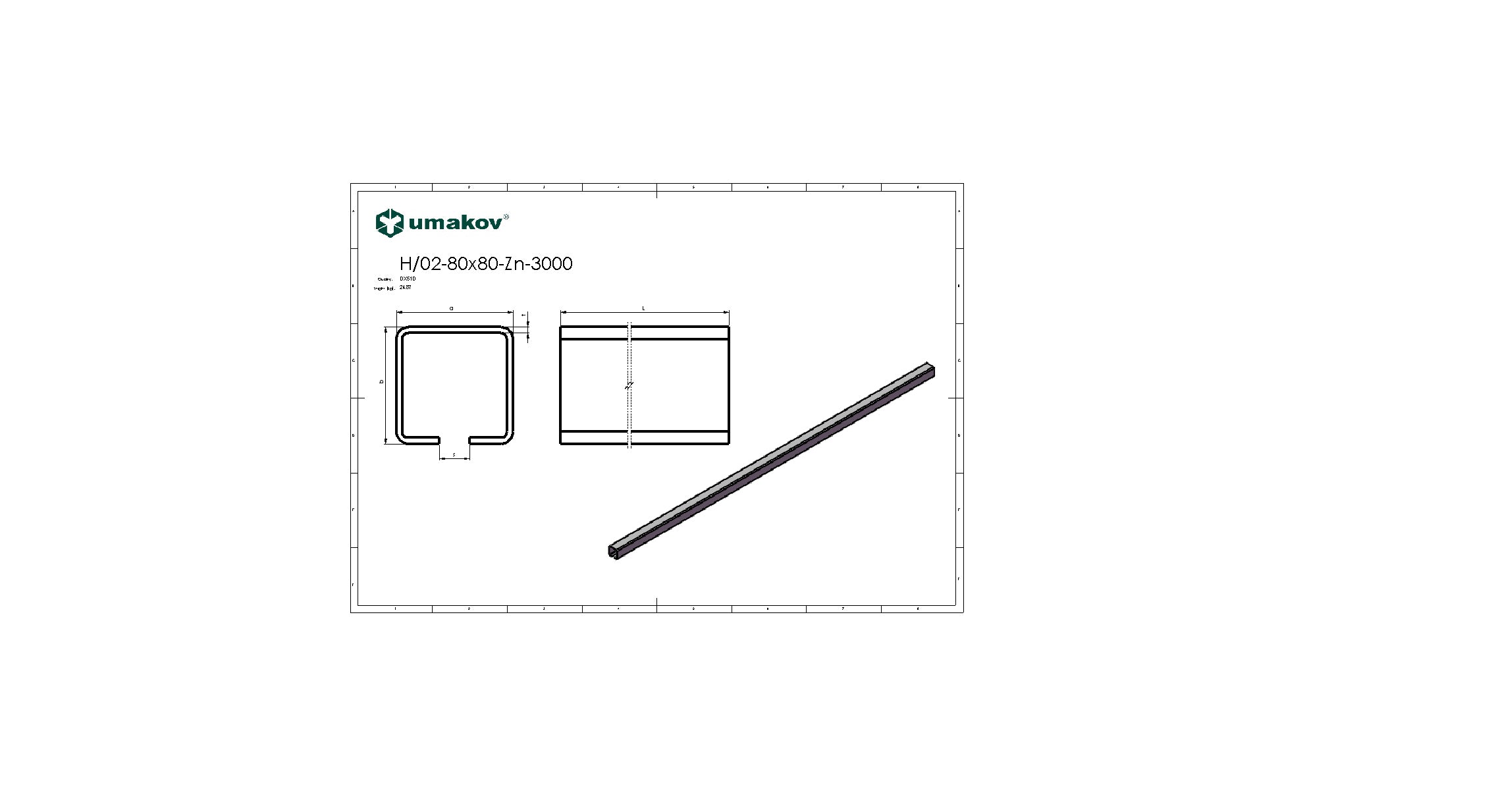 Materiál: Oceľ, Povrchová úprava: Natural, Značka: Umakov, Rozmerová rada (mm): 80x80, L: 6000, a: 80, b: 80, s: 25, t: 5