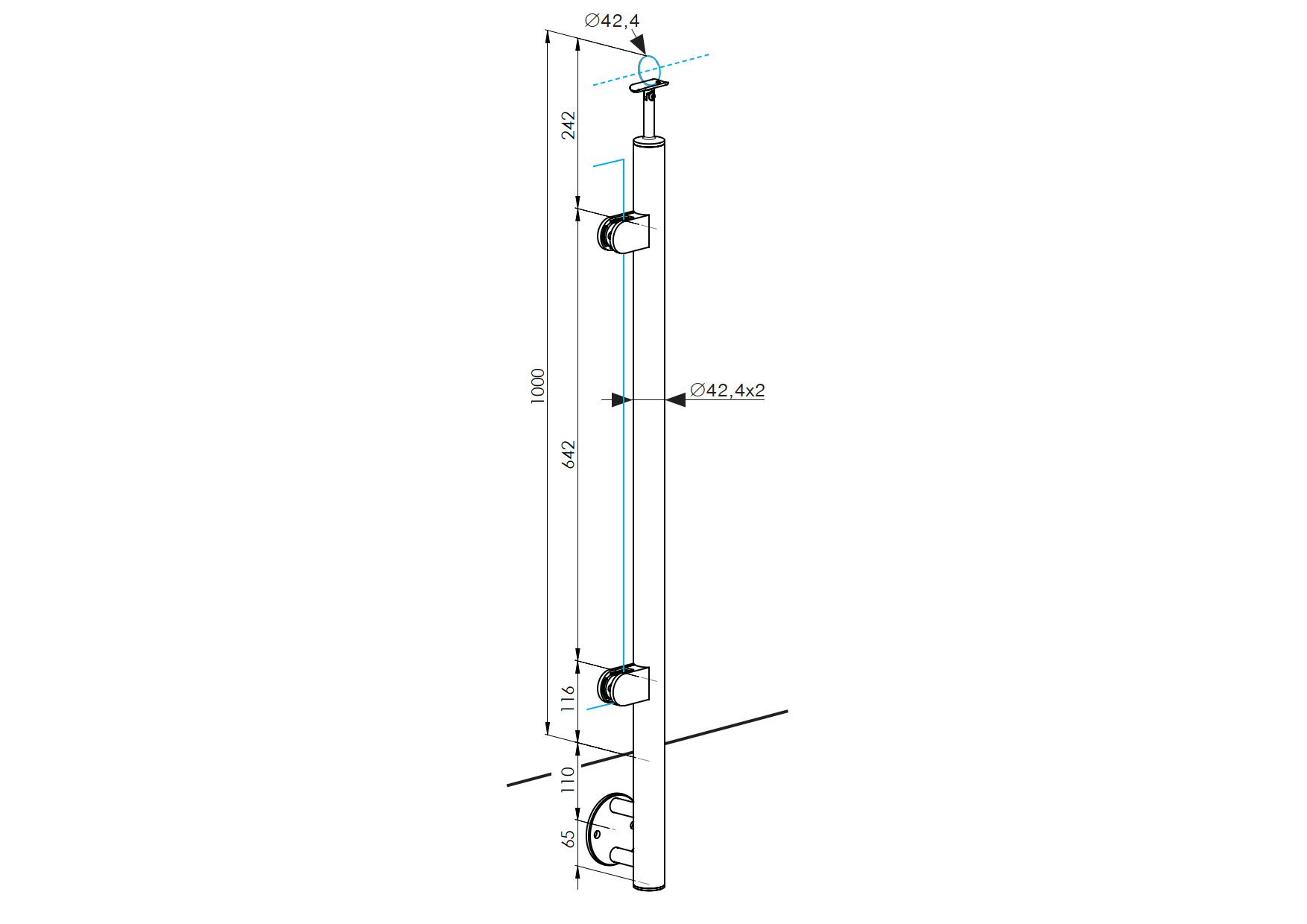 Stĺpik antikor, BK-rovné AISI304, D42,4/H1000mm A-VER-BR100-FLEX