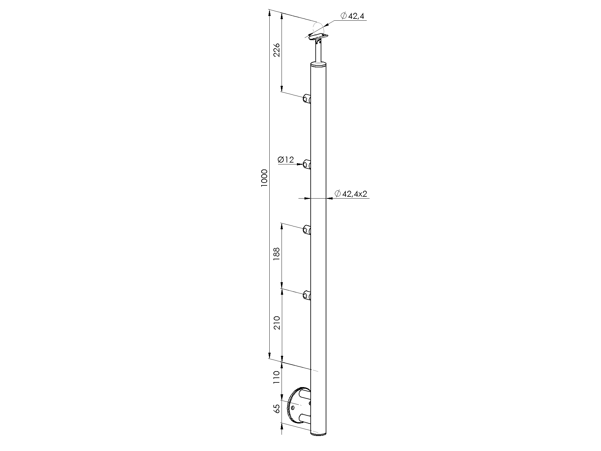nerezový stĺpik, VK-rovné AISI304, D42,4/5xd12/H11 A-VR110-5D12