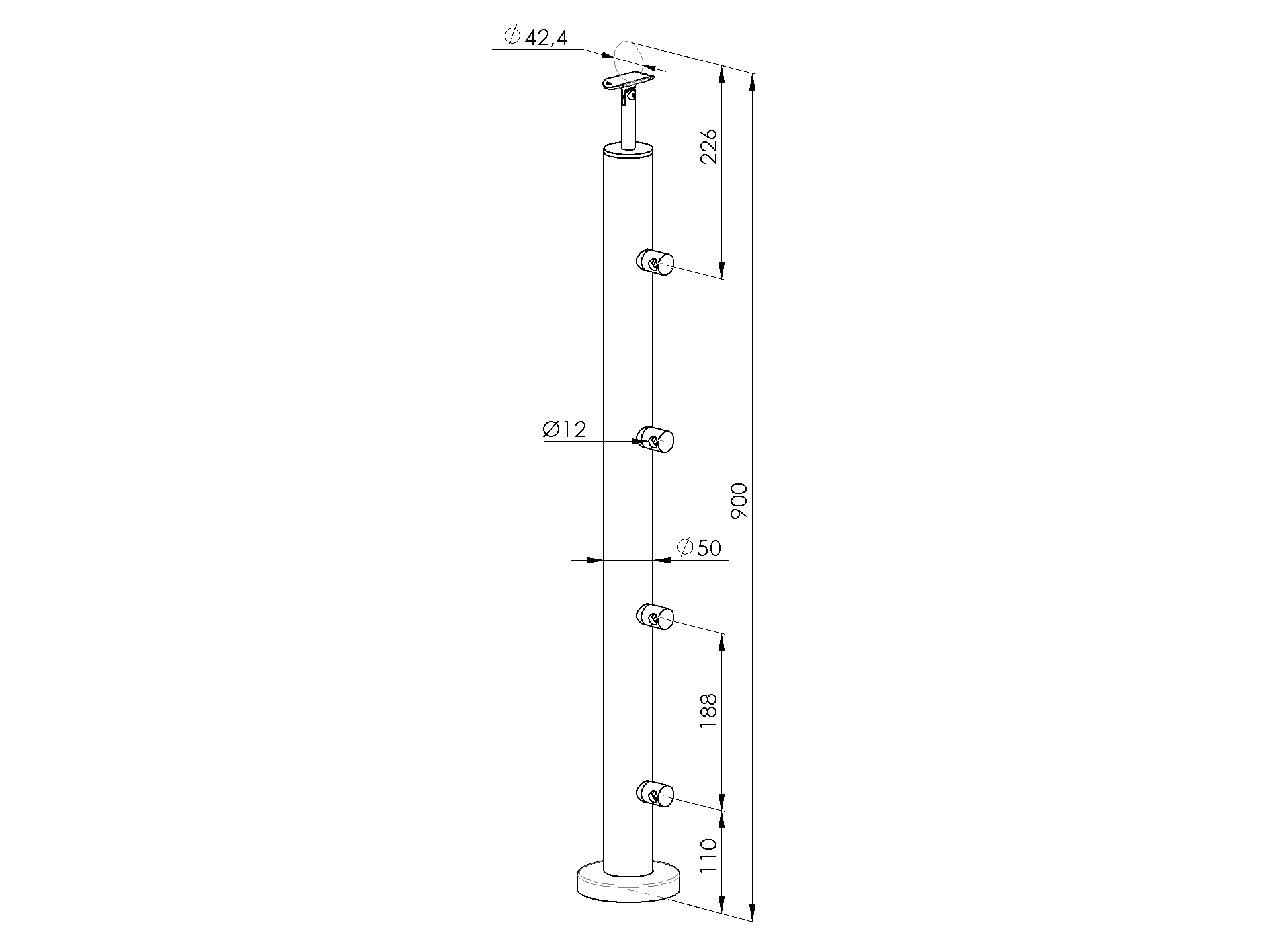 Stĺpik BUK (BEECH) JP 40x40mm 4xd12mm, H900, VK WBJP-VR90-4D12