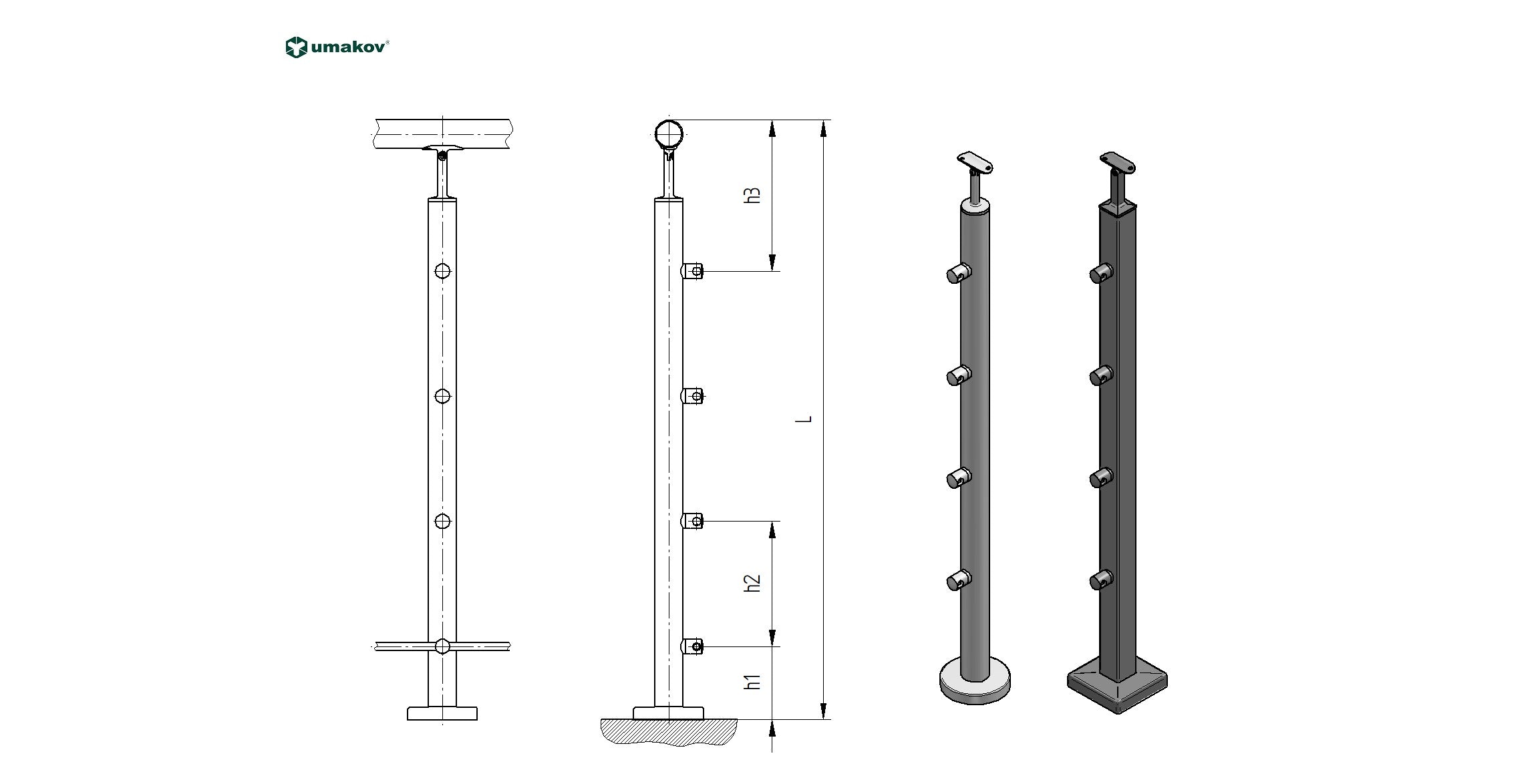 Stĺpik DUB (OAK) JP 40x40mm, 4xd12mm, v=90cm, VK-S